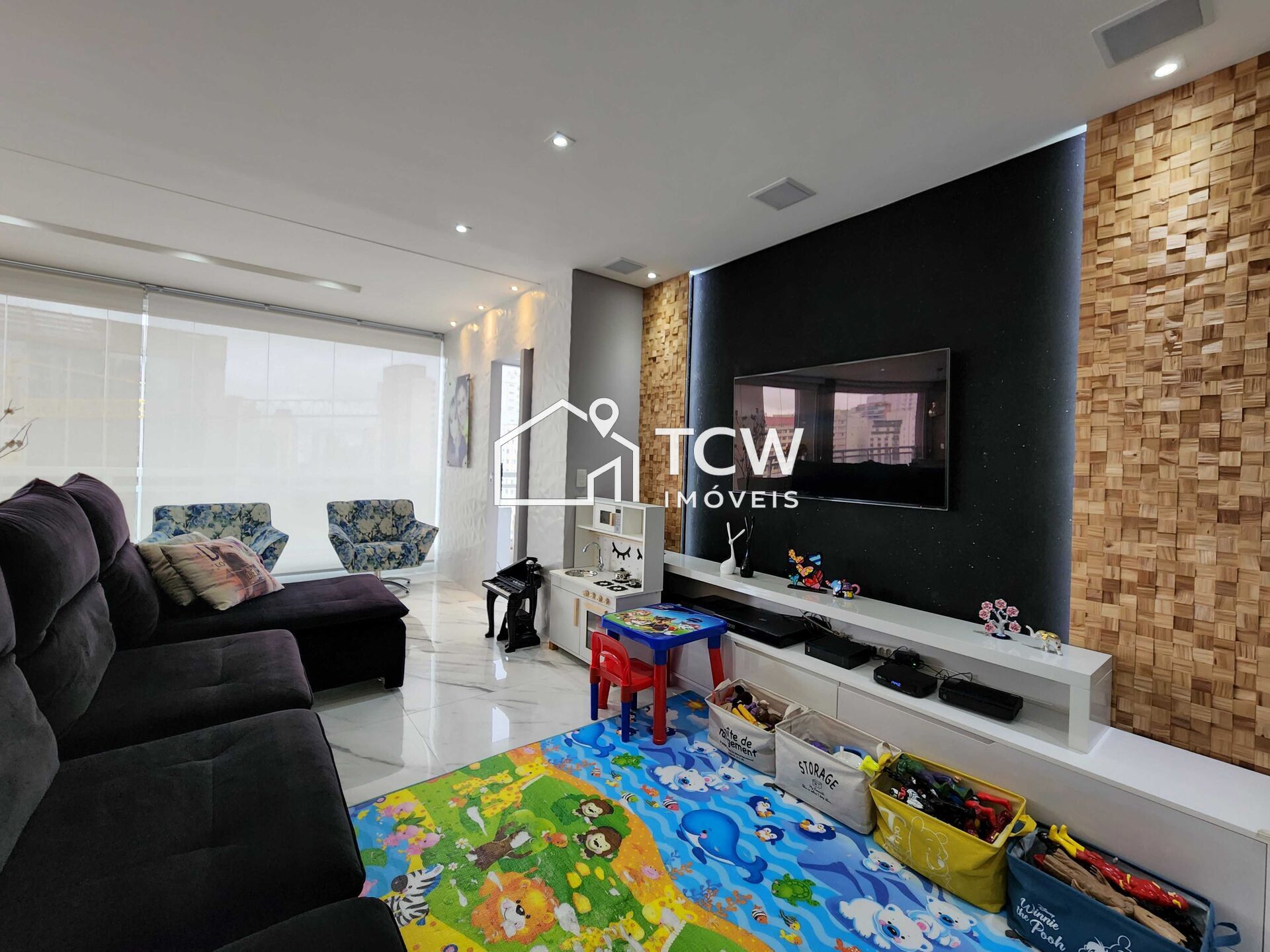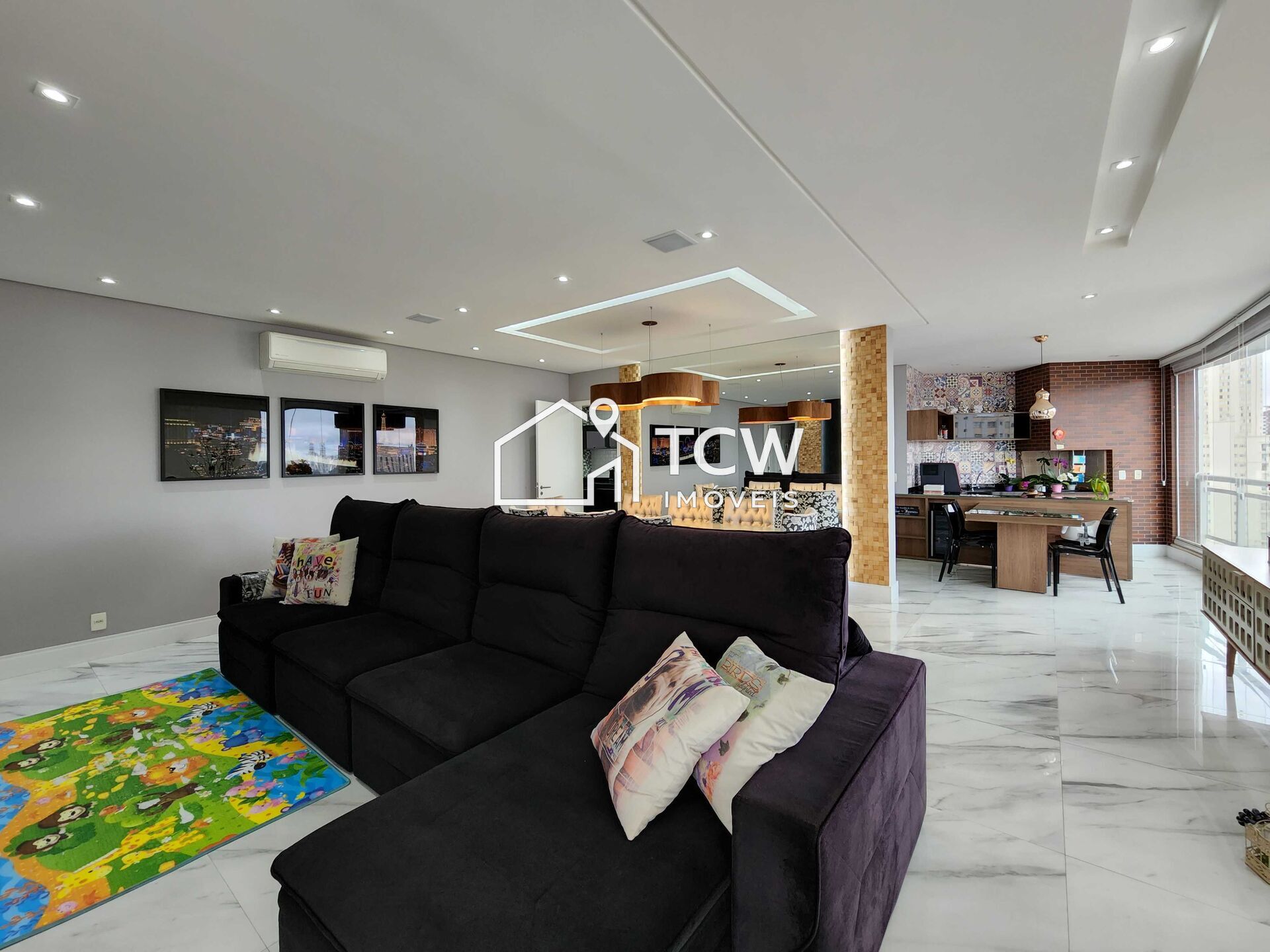 # 171m2, 3 Dorms sendo 2 Suítes, Home office, Lavabo, Hall privativo, Living integrado a ampla varanda gourmet, Sala de jantar, Área de serviço com W.C., Cozinha, Depósito privativo no subsolo, 3 Vagas na garagem