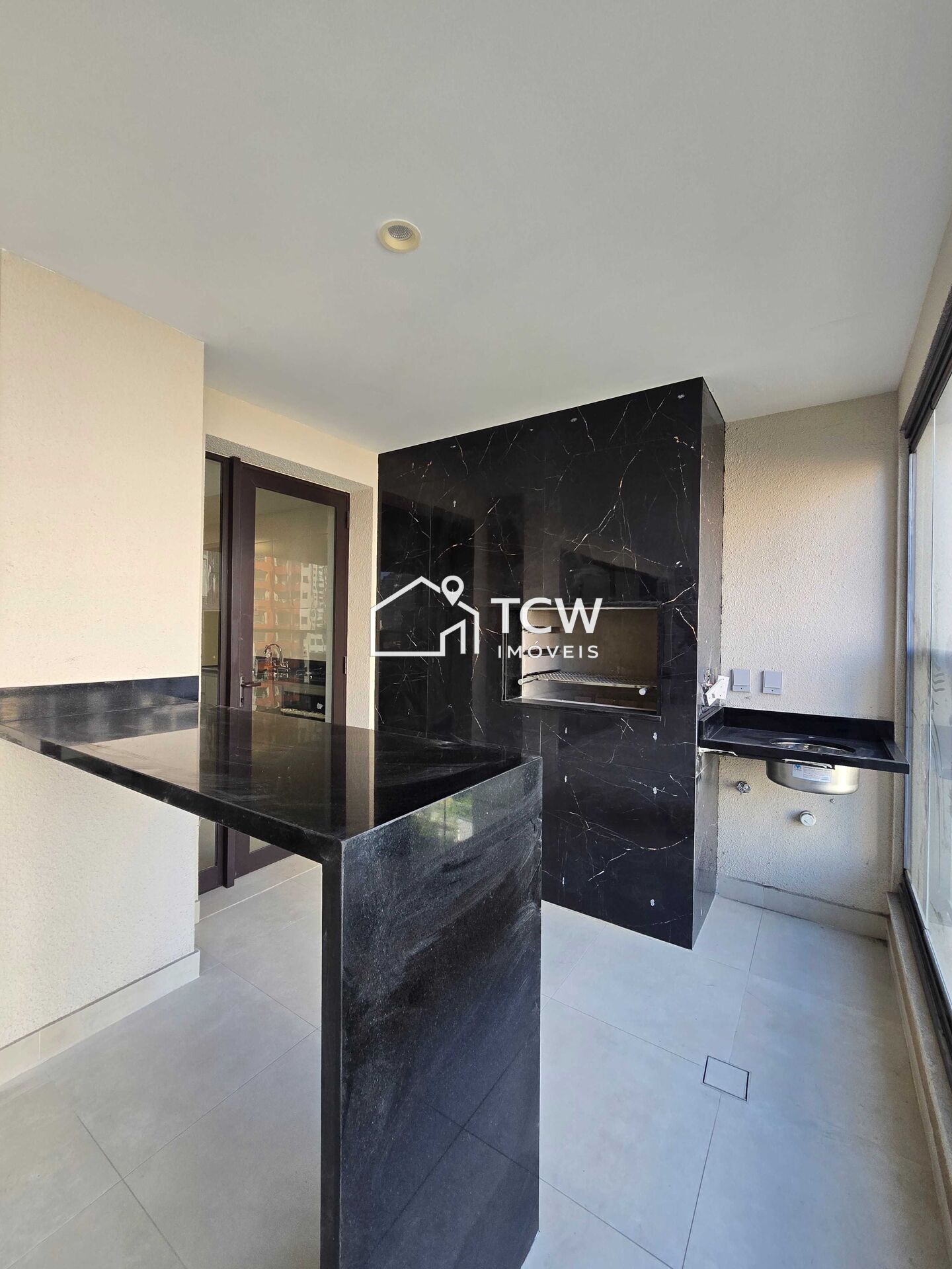 Varanda gourmet com fechamento em vidro