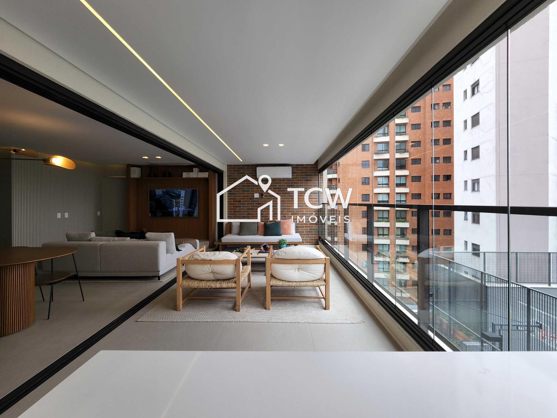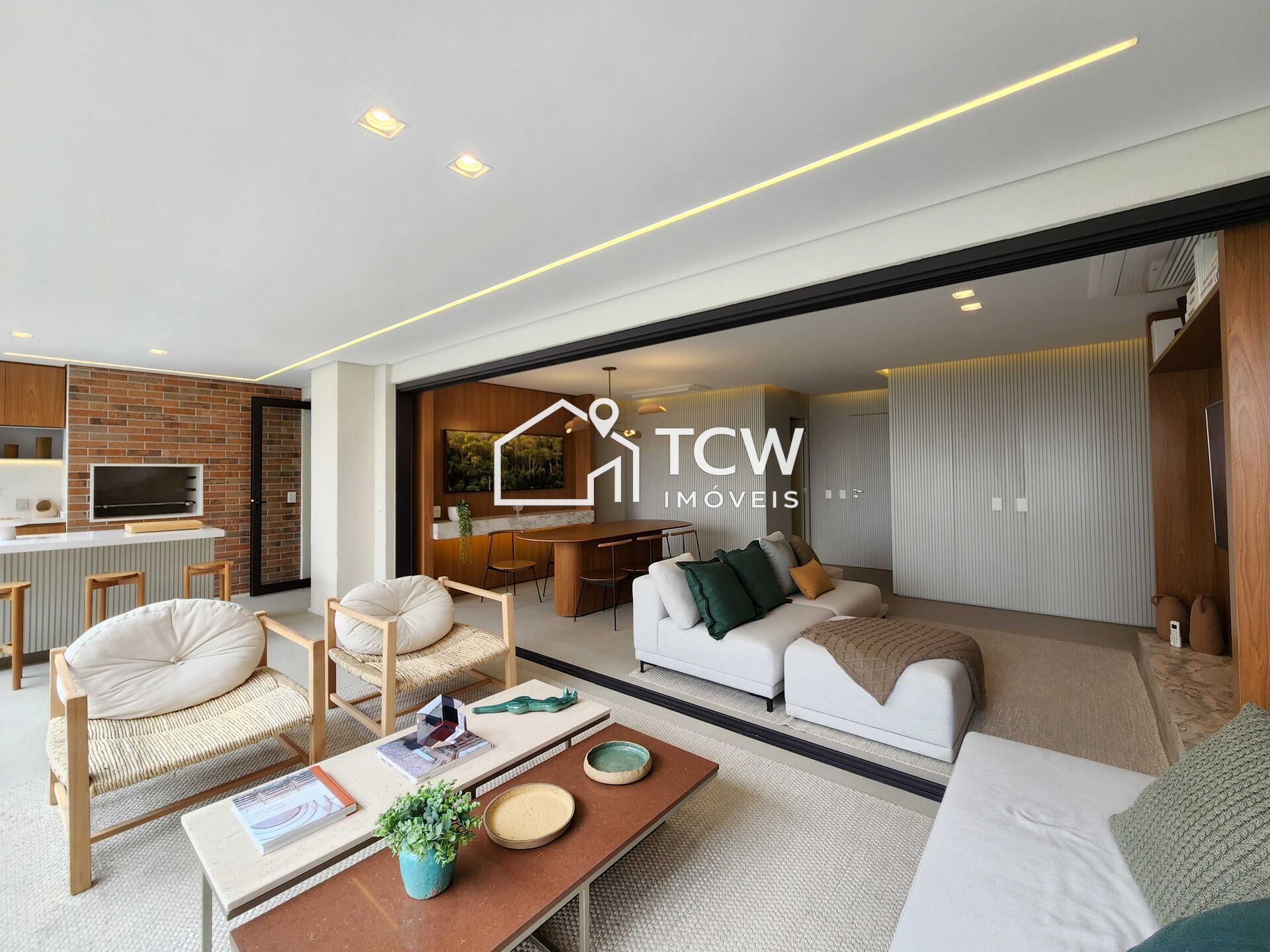 # 145m2, 4 dorms sendo 2 suítes, Lavabo, Banheiro social, Living integrado a Varanda gourmet, Cozinha, Área de serviço com W.C., Depósito, 2 Vagas na garagem