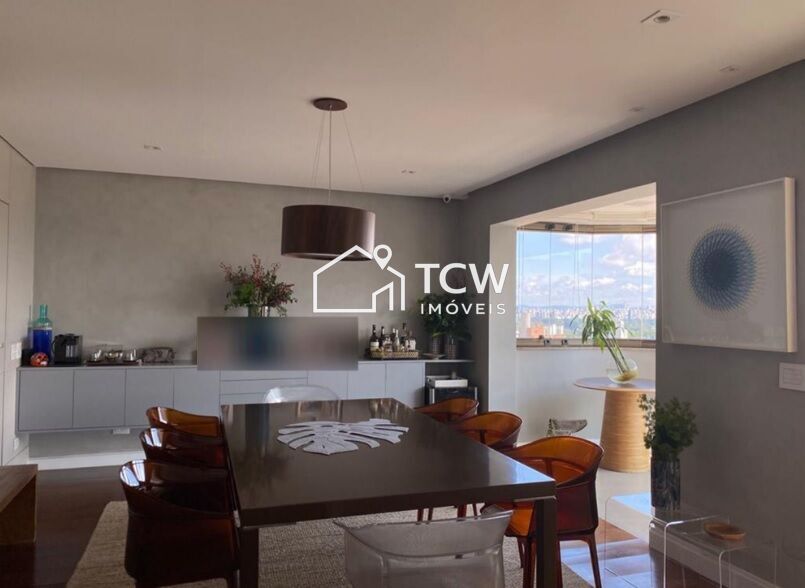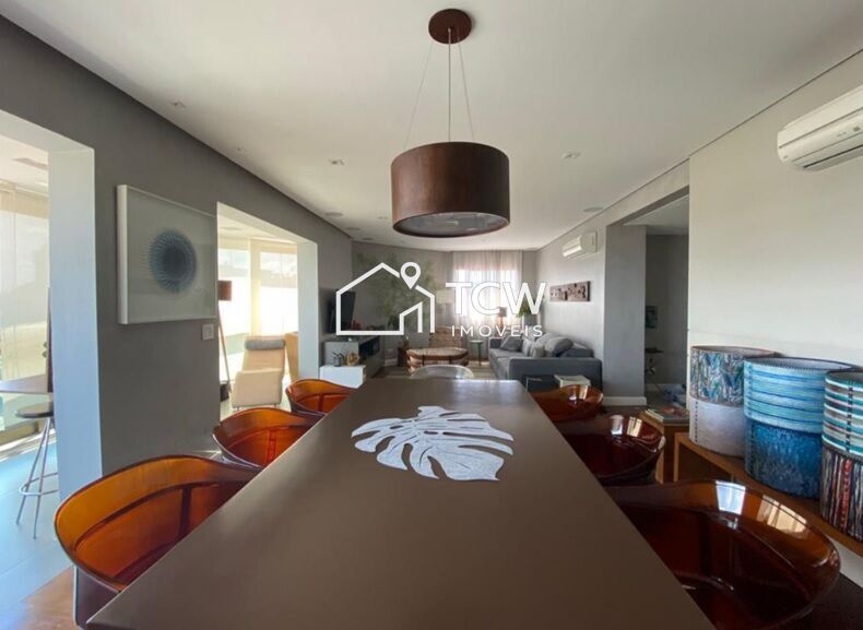 # 185m2, 4 Dorms sendo 2 Suítes, Hall social, Lavabo, Amplo living integrado ao terraço, Sala de tv, Sala de jantar, Copa, Cozinha, Área de serviço, Dependência de empregada com banheiro, Depósito privativo, Hall de serviço, 4 Vagas na garagem