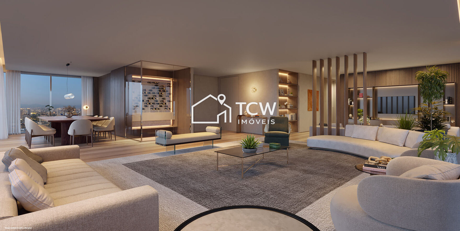 368m2, 4 Suítes, Rouparia, Hall social, Lavabo, Amplo living integrado ao terraço, Home theater, Sala de jantar, Copa, Cozinha, Despensa, Prataria, Área de serviço com W.C., Dependência de empregada, Área técnica, 4 Vagas na garagem