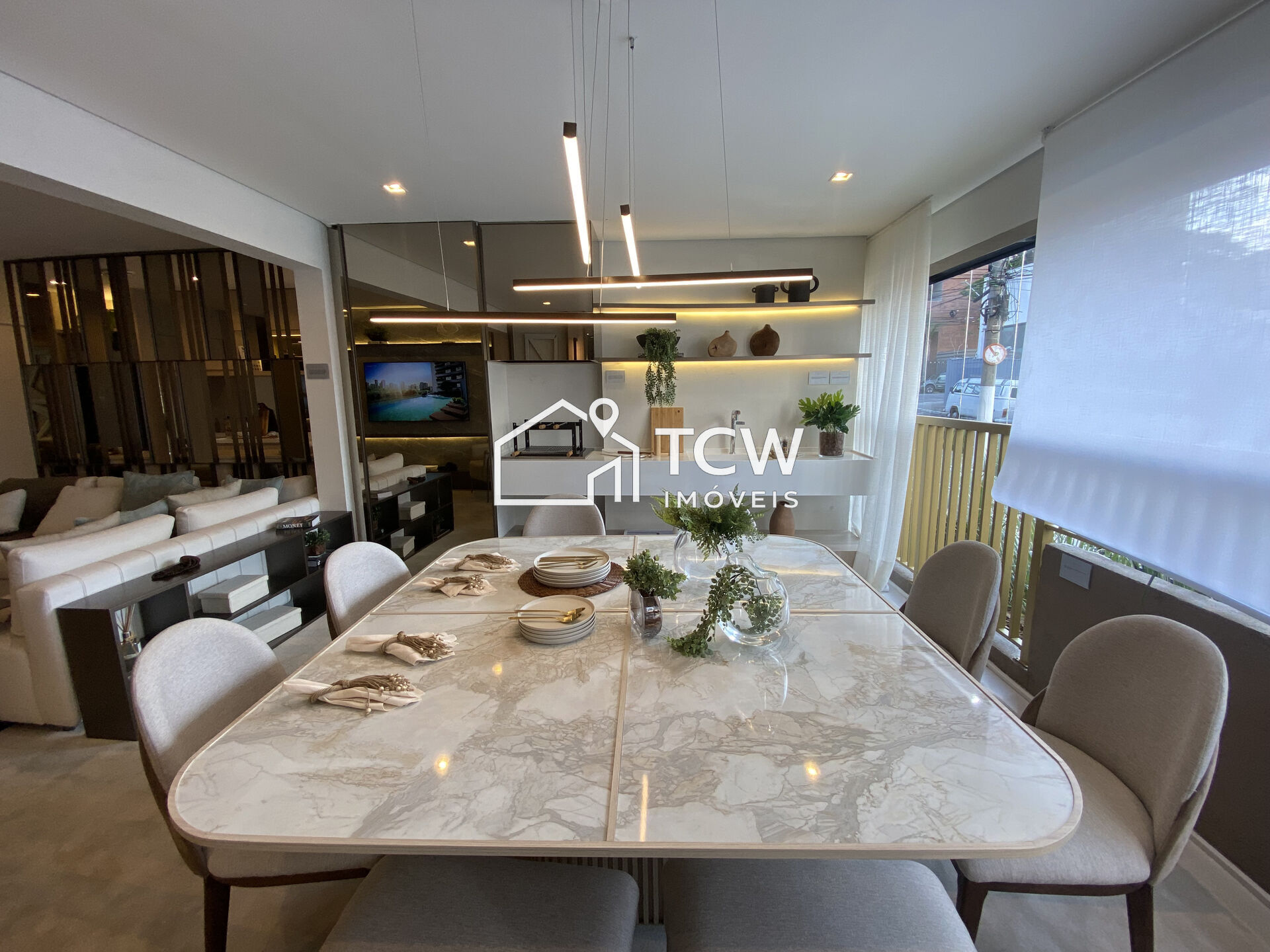 123m2, 3 Suítes, Lavabo, Living integrado ao terraço gourmet, Sala de jantar, Cozinha, Área de serviço, Terraço técnico, 2 Vagas na garagem