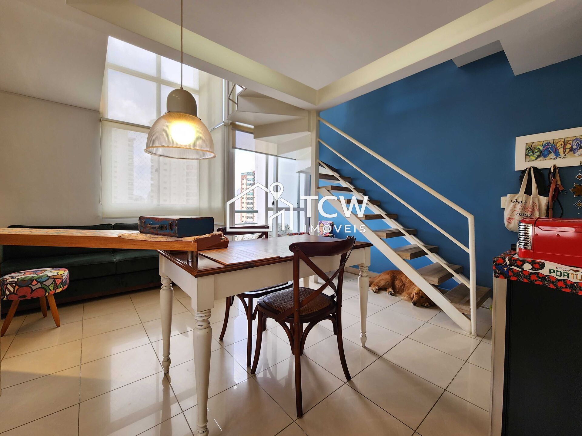 # Loft duplex de 55m2, 1 Suíte, Lavabo, Living, Cozinha, Área de serviço, 2 Vagas na garagem