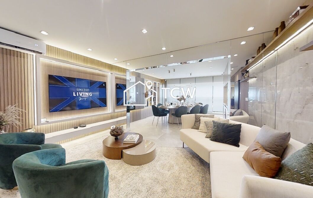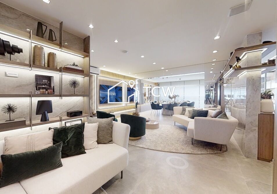123m2, 3 Suítes, Lavabo, Living integrado ao terraço gourmet, Sala de tv, Sala de jantar, Cozinha, Área de serviço, 2 Vagas na garagem