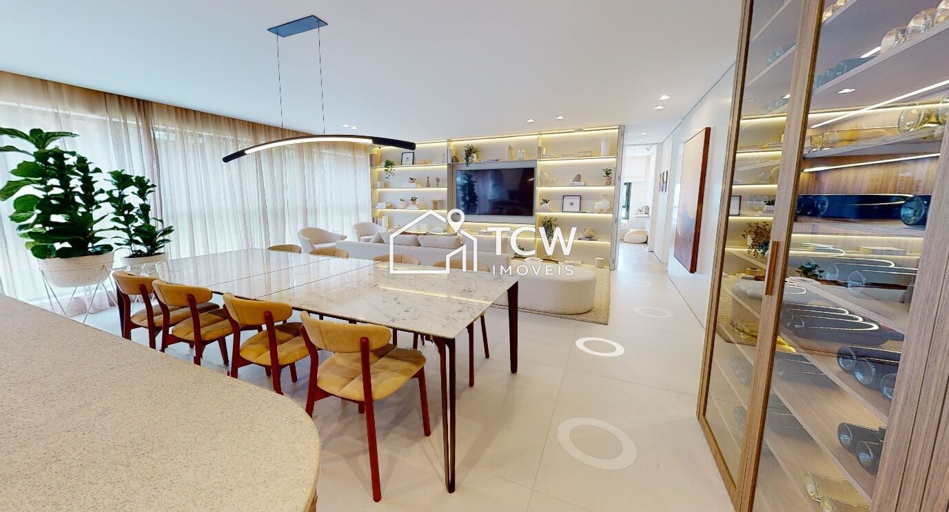 146m2, 4 Dorms sendo 2 Suítes, Hall social, Lavabo, Living integrado ao terraço gourmet, Sala de jantar, Cozinha, Área de serviço com W.C., Depósito privativo, 2 Vagas na garagem