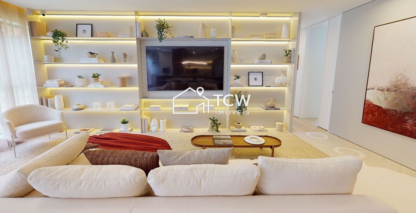 Diferenciais das unidades: Hall privativo, Área técnica para condensadora, Suíte master com closet independente do quarto e espaço para cama King Size e terraço privativo, Terraço espaçoso permitindo boa iluminação e ventilação, Churrasqueira entregue, Terraço técnico para condensadoras, Previsão para ar condicionado no living, terraço, cozinha e suítes, Acesso de serviço independente