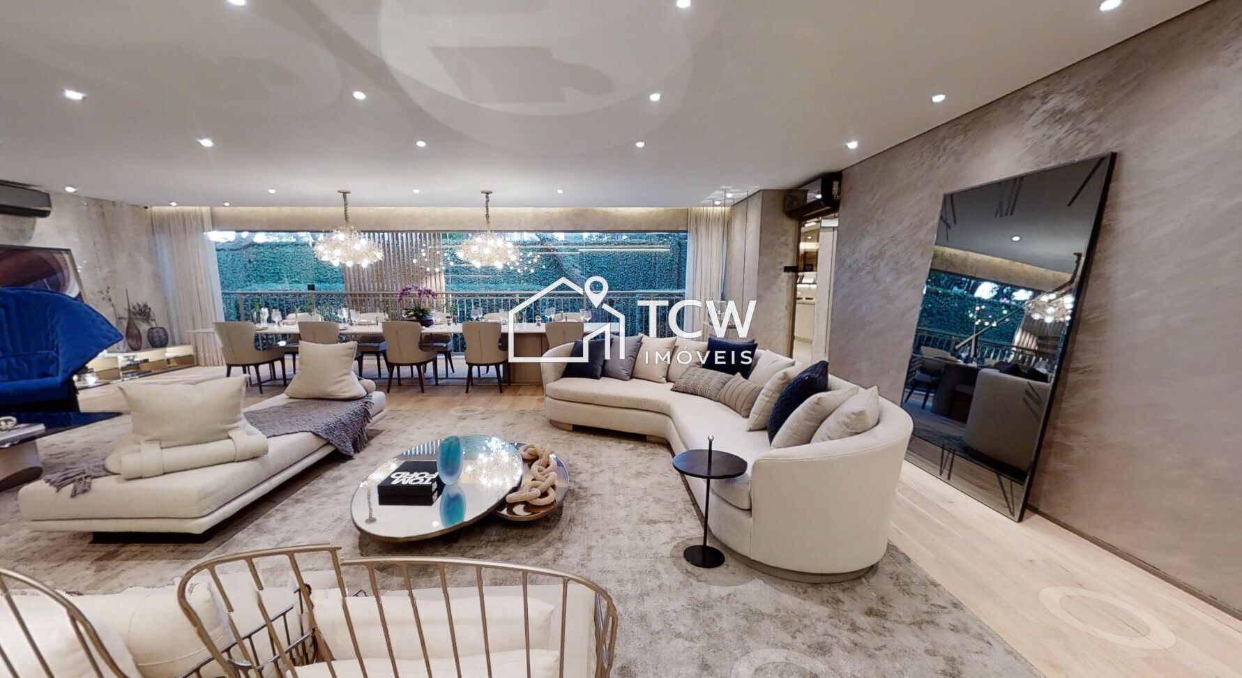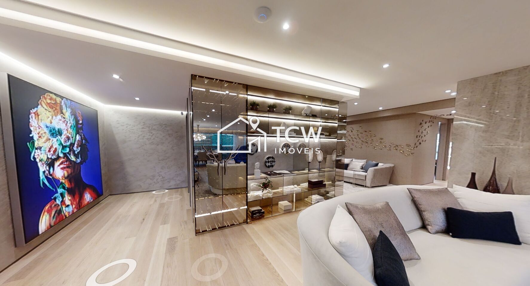 252m2, 4 Suítes, Home office, Hall social, Lavabo, Living integrado ao terraço gourmet, Home theater, Sala de almoço, Sala de jantar, Copa, Cozinha, Área de serviço com banheiro, Dependência de empregada, 4 Vagas na garagem