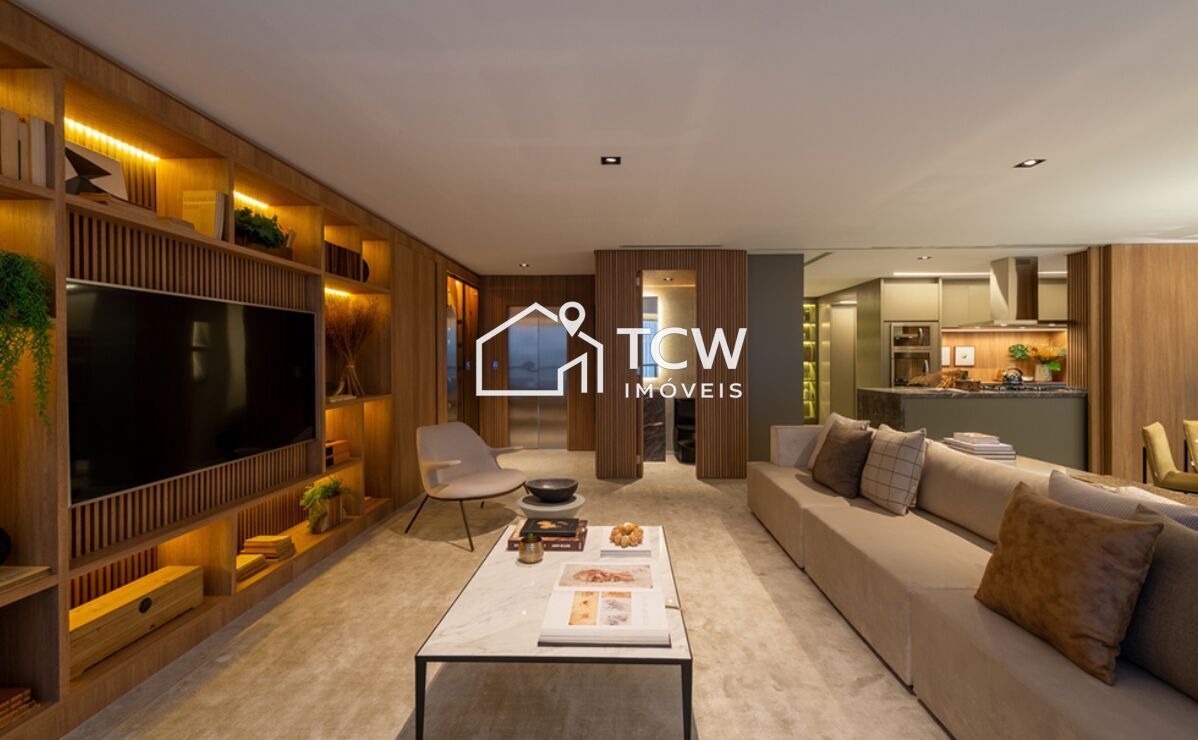 152m2, 3 Suítes, Lavabo, Hall social, Living integrado ao terraço gourmet, Sala de jantar, Cozinha, Área de serviço com W.C., Despensa, 2 Vagas na garagem