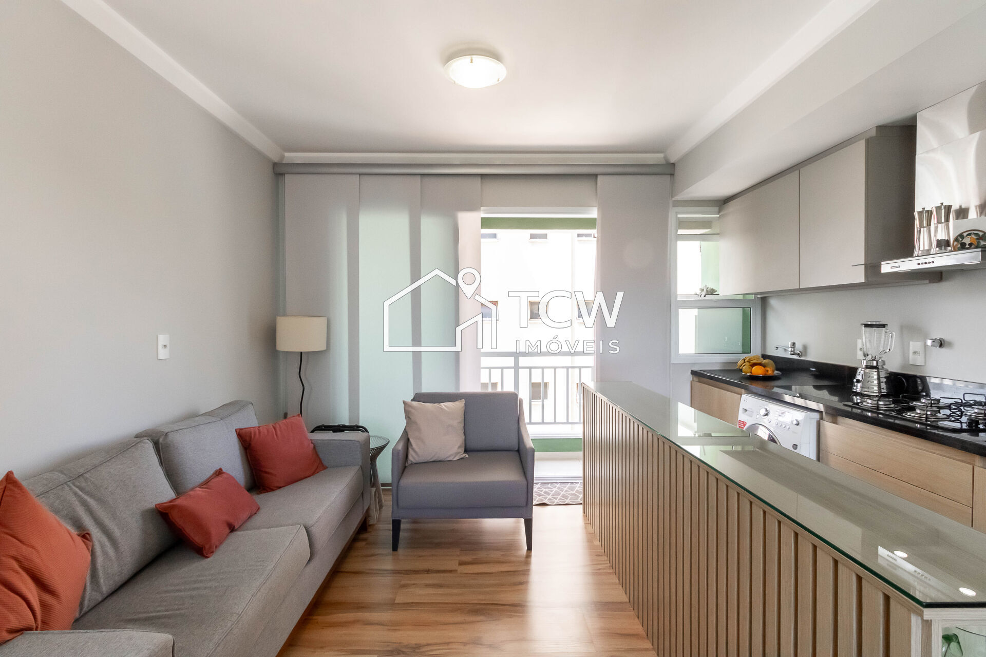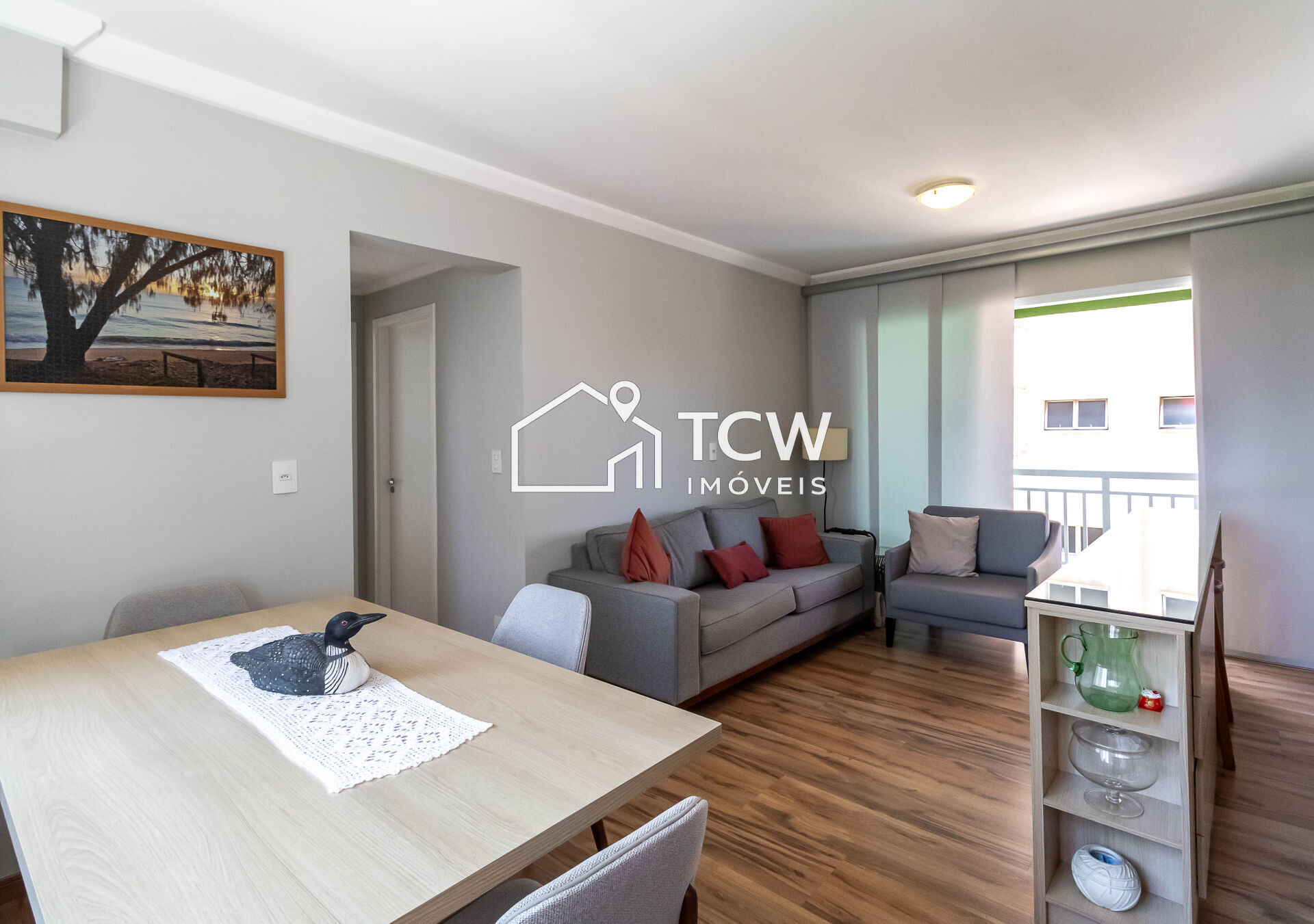 # 72m2, 2 Dorms sendo 1 Suíte, Banheiro social, Living integrada a varanda, Sala de jantar, Área de serviço, 1 Vaga na garagem
