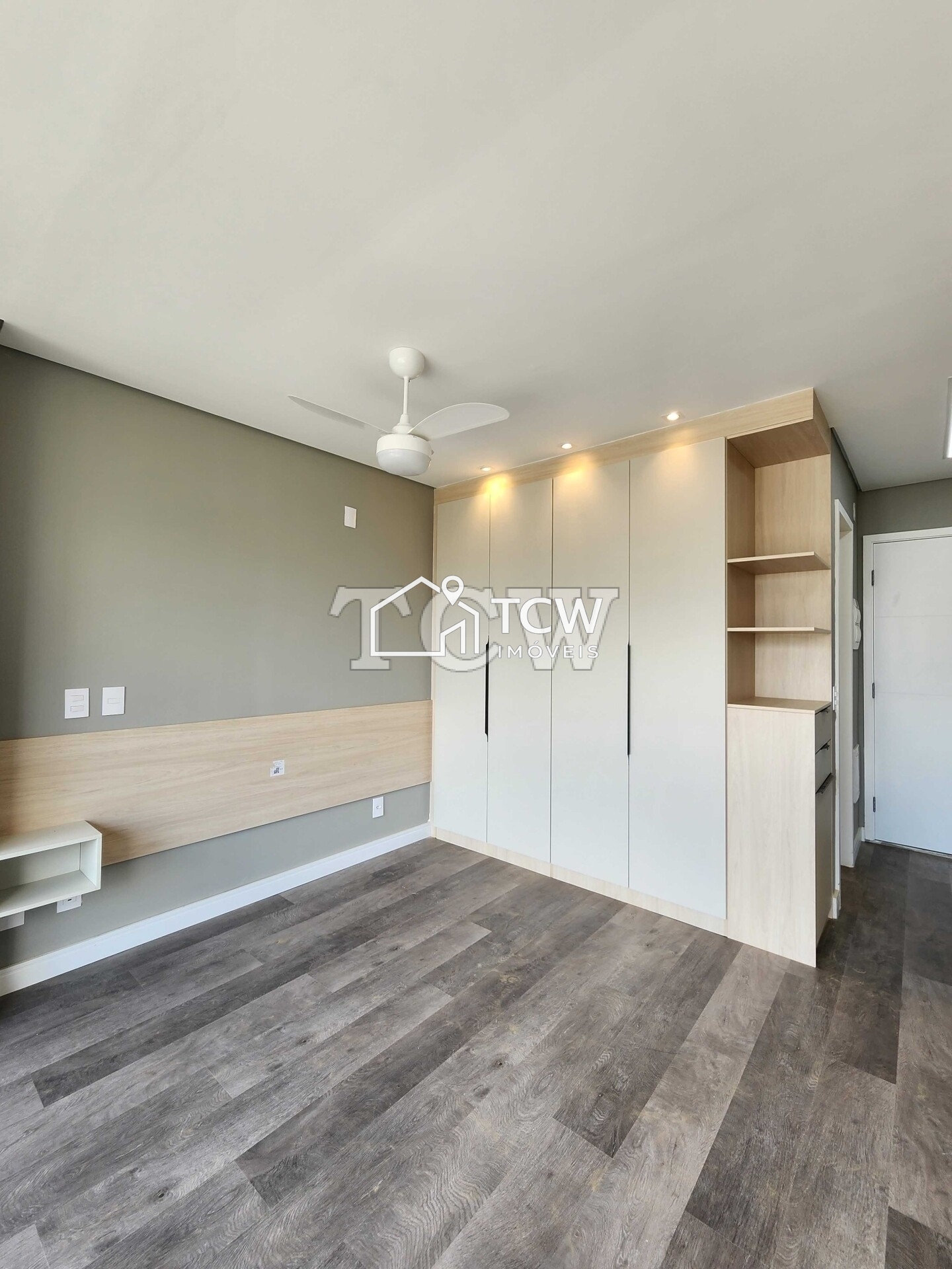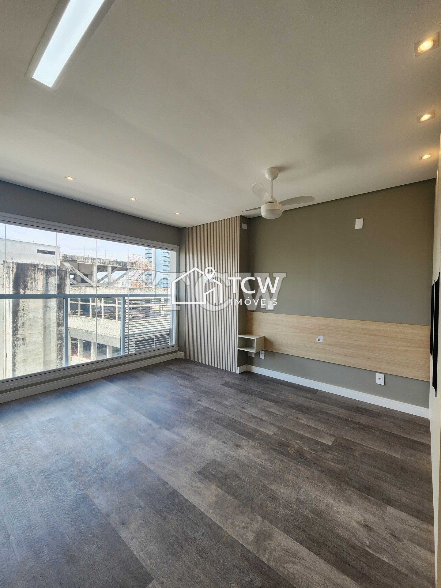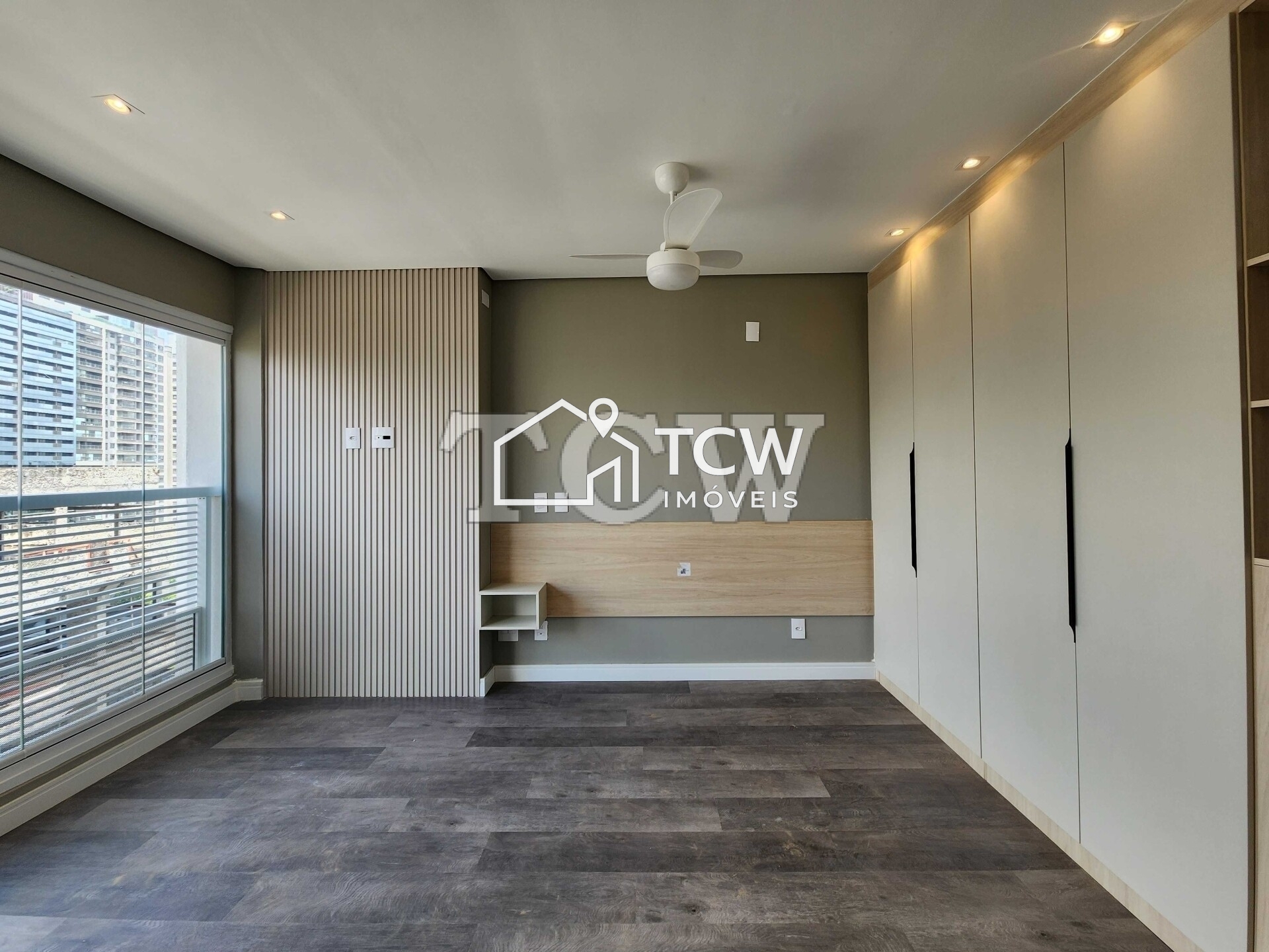 # Studio de 26m2. 1 Dormitório, Banheiro, Fechamento de sacada em vidro, Escrivaninha, Cozinha com cooktop