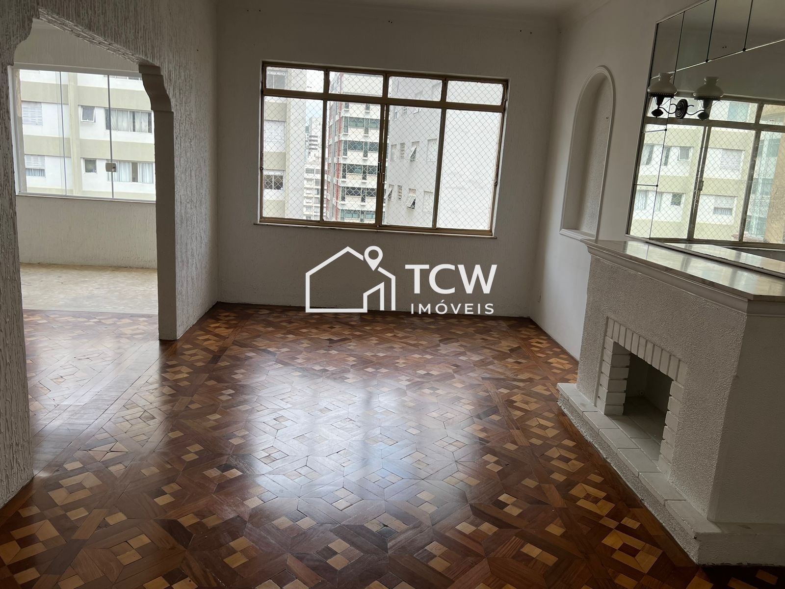 # Amplo living com lareira para 3 ou 4 ambientes