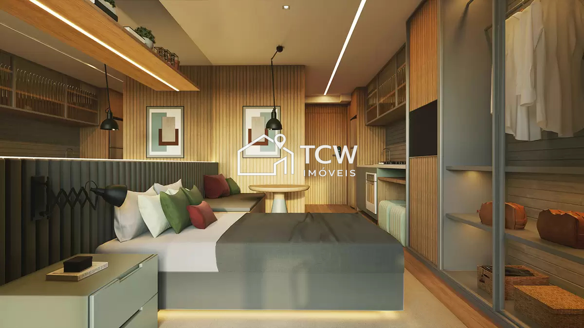 Studios de 26 a 33m2. 1 Dormitório, Banheiro, Cozinha