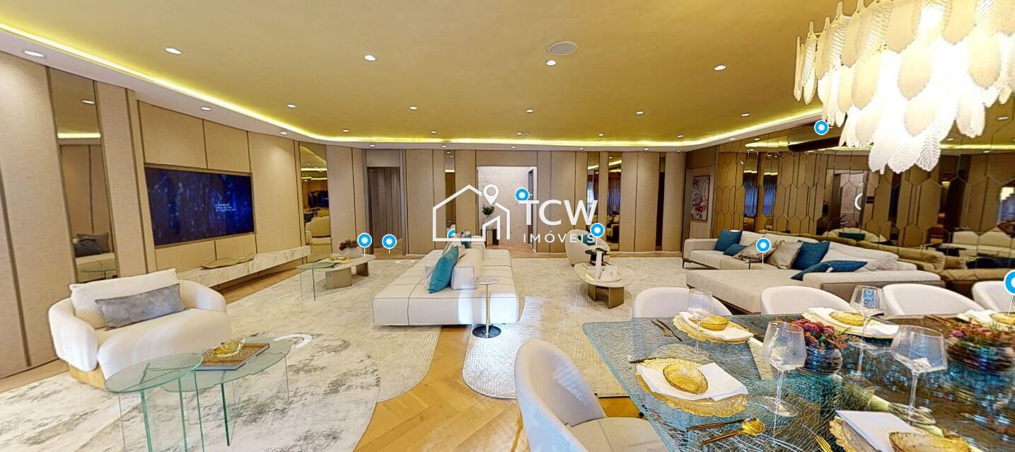 251m2, 4 Suítes sendo 1 Suíte master, Hall social privativo, Lavabo, Amplo living integrado a varanda gourmet, Sala de tv, Sala de jantar, Copa, Cozinha, Despensa, Área de serviço com banheiro, 3 ou 4 Vagas na garagem