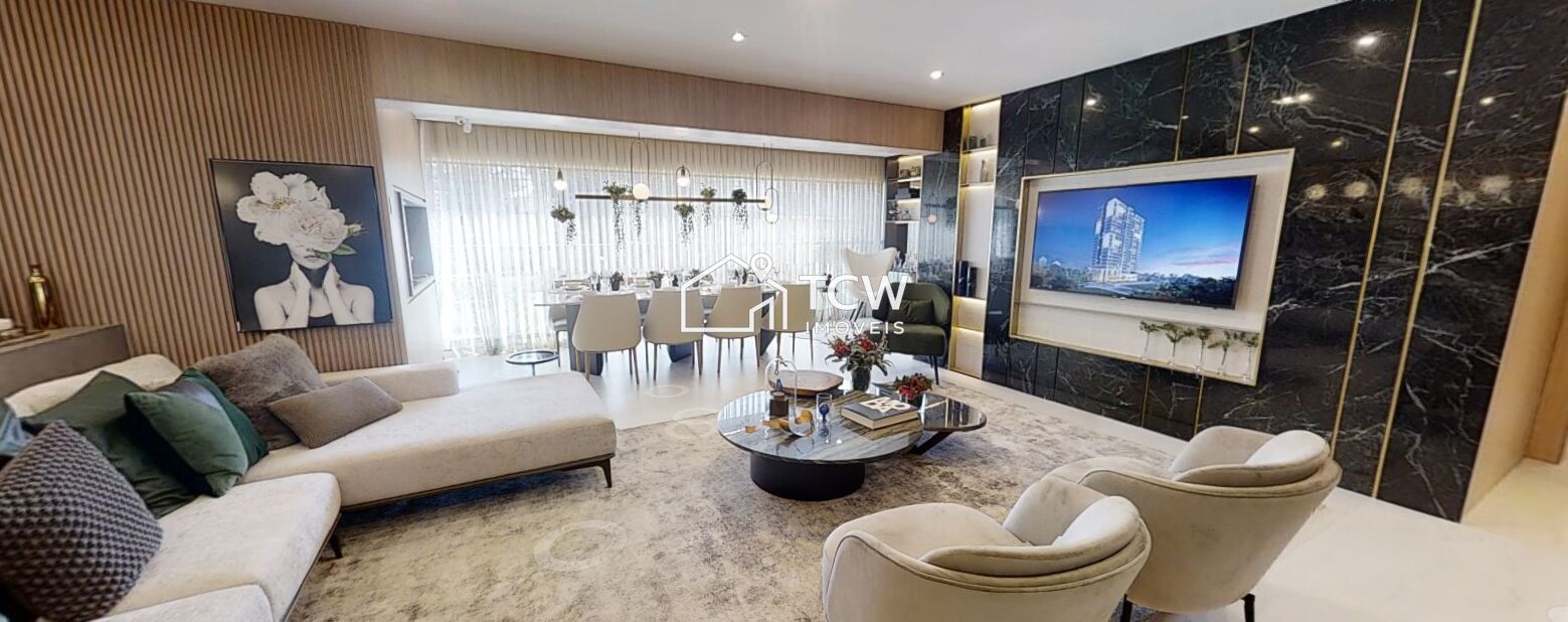 Apartamentos de 110 a 136m2. 1 a 3 Suítes, Lavabo, Living integrado a varanda gourmet, Sala de jantar, Cozinha, Área de serviço, 1 a 2 Vagas na garagem