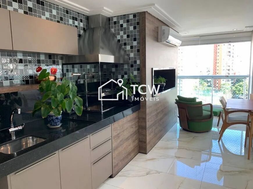 # 245m2, 4 Suítes sendo 1 Suíte master, Home office, Lavabo, Hall social, Living integrado ao amplo terraço gourmet, Sala de tv, Sala de jantar, Cozinha, Área de serviço com W.C., Dependência de empregada, Depósito privativo, 4 Vagas na garagem