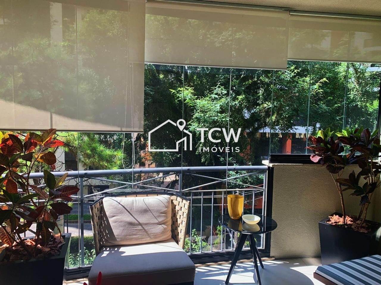 Varanda com fechamento em vidro e persianas
