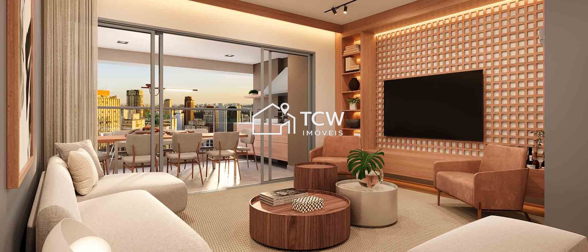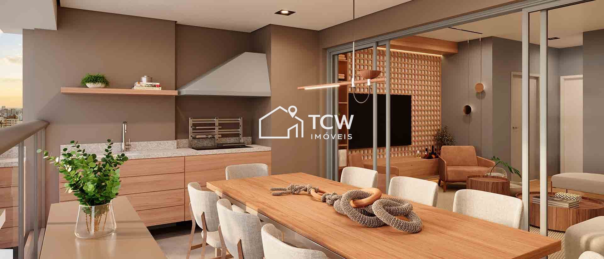 125m2, 3 Suítes sendo 1 Suíte master, Living integrado ao terraço gourmet, Lavabo, Sala de jantar, Cozinha, Área de serviço, 2 Vagas na garagem