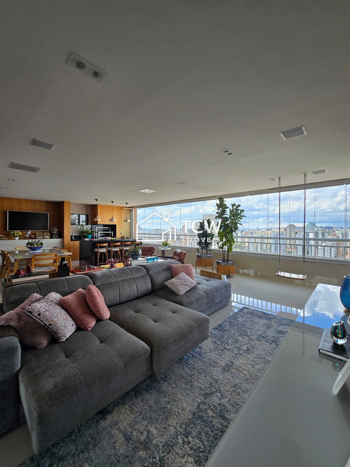 # 160m2, 3 Suítes, Home Office, Hall Social, Lavabo, Living Integrado ao Terraço Gourmet, Sala de Tv, Cozinha, Área de Serviço com W.C., Depósito Privativo, 4 Vagas Demarcadas