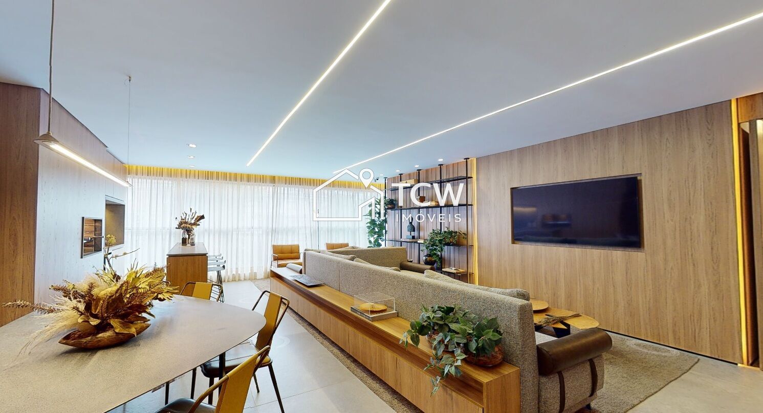 157m2, 4 Dorms sendo 2 Suítes ou 3 Suítes, Hall social, Living integrado a varanda gourmet, Lavabo, Sala de jantar, Cozinha, Área de serviço, Banheiro, Terraço técnico, 2 Vagas na garagem