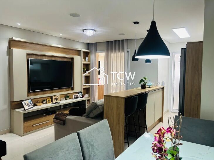 69m2, 2 Dorms sendo 1 Suíte, Banheiro social, Living integrado a varanda gourmet, Sala de jantar, Cozinha, Área de serviço, 1 Vaga na garagem