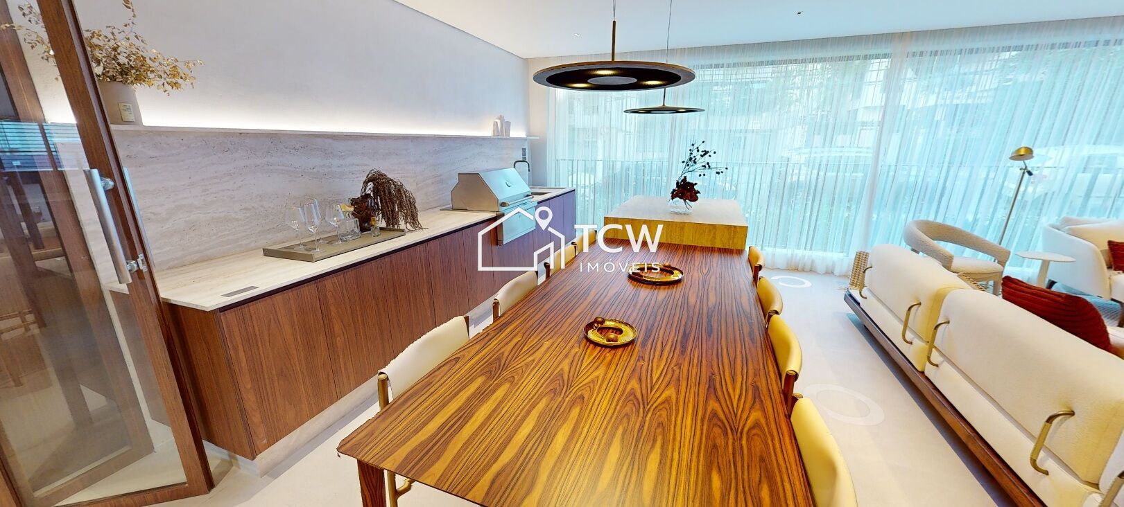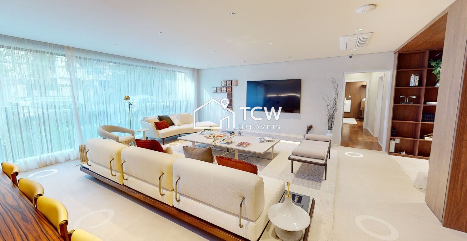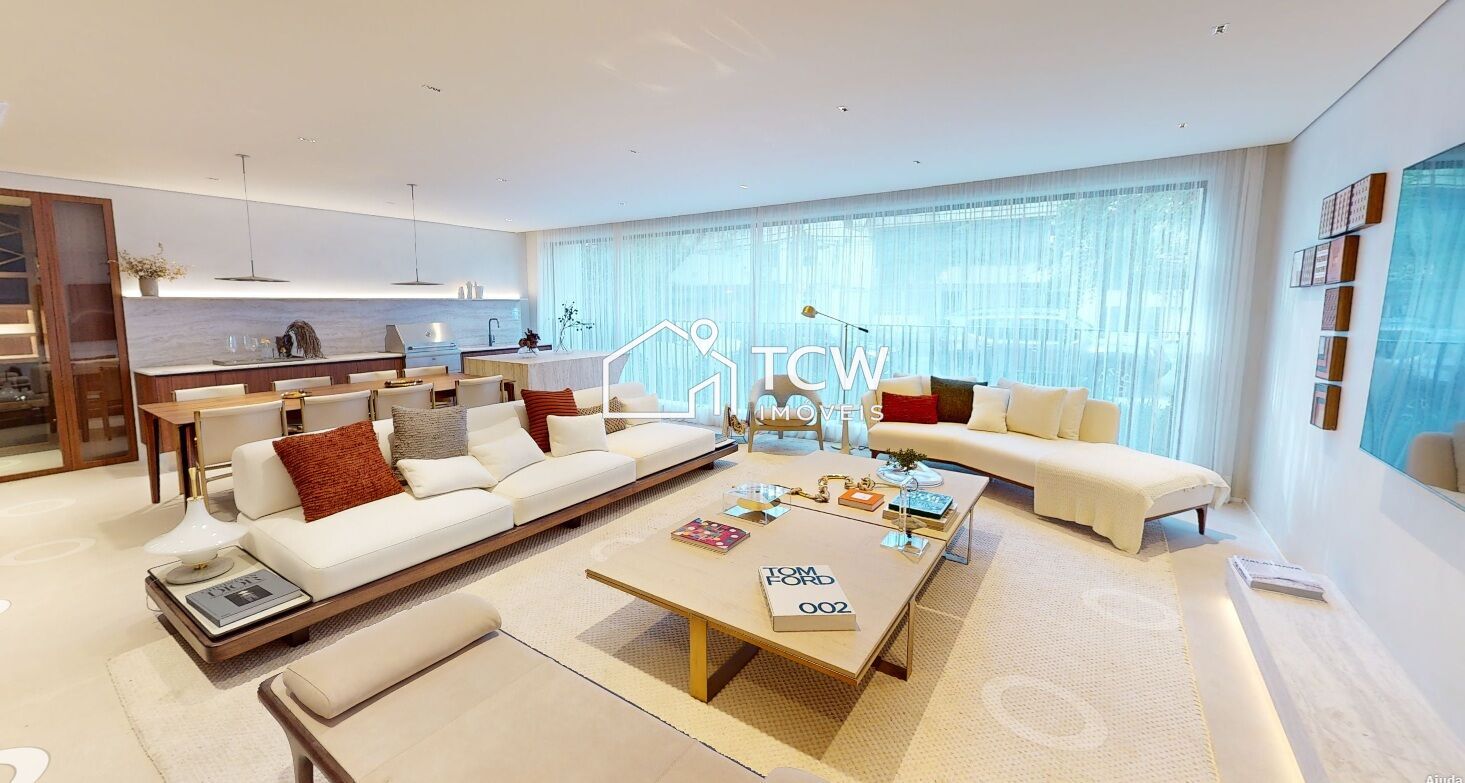 Amplo e sofisticado, este apartamento oferece hall social privativo, varanda gourmet integrada ao living, adega, sala de TV e jantar, além de uma generosa cozinha com área de serviço. Suíte master espaçosa e 3 vagas determinadas na garagem.