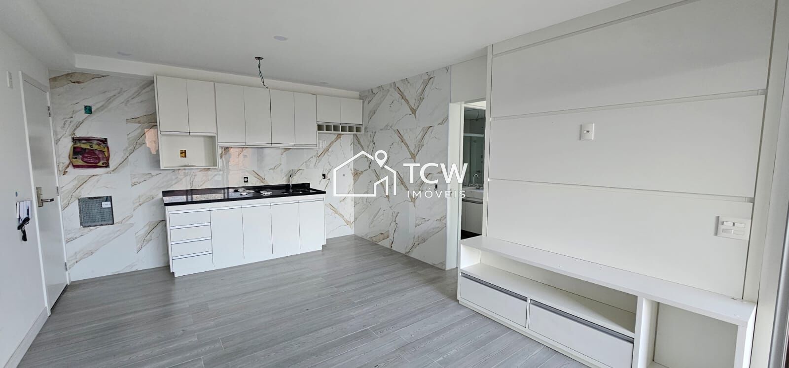 50m2, 1 Dormitório, Banheiro, Living integrado ao terraço, Cozinha, Depósito privativo, 2 Vagas na garagem