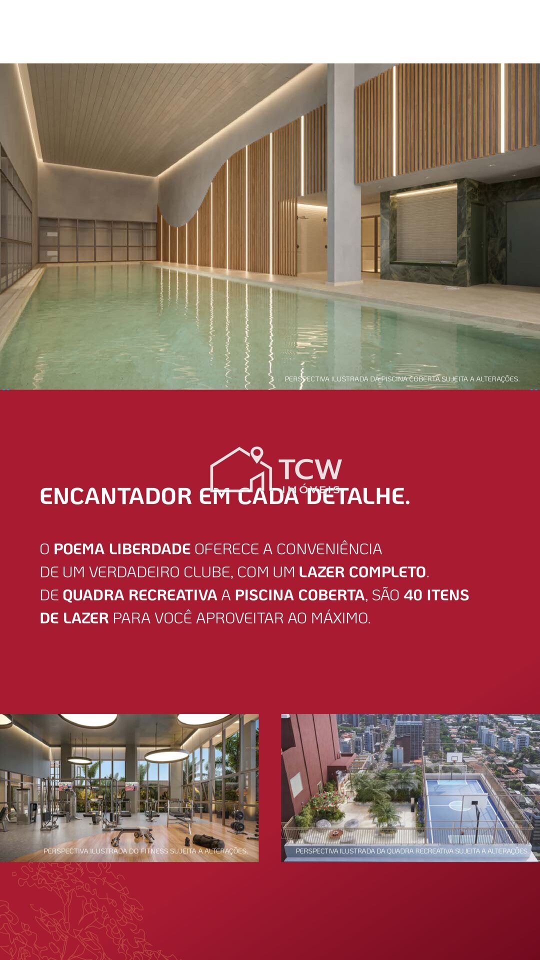 Terraço de festas • Quadra poliesportiva • Private Pool com piscina + churrasqueira exclusiva para eventos • Piscina coberta • Estúdio de podcast • Fitness • Quadra recreativa • Coworking • Muito mais!