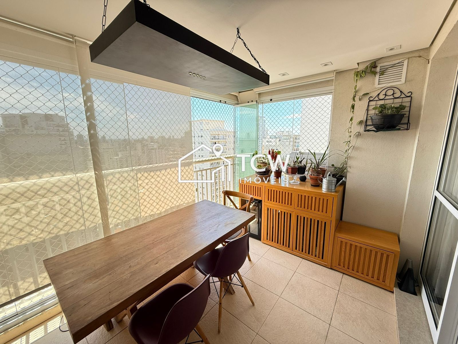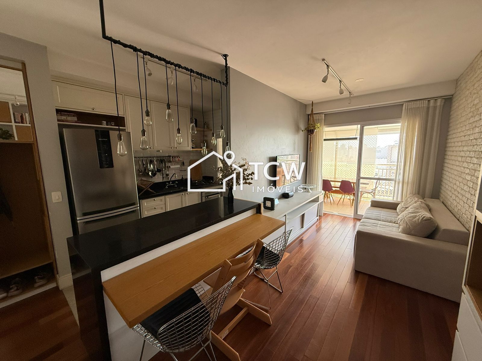 Apartamento moderno, totalmente mobiliado, com excelente iluminação natural e living integrado à varanda gourmet com fechamento em vidro.