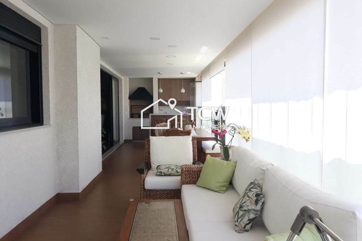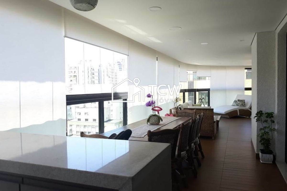 # 215m2, 4 Dorms sendo 2 Suítes, Suíte master com terraço privativo, Hall social, Lavabo, Living integrado ao terraço gourmet, Sala de jantar, Cozinha, Área de serviço com W.C., Depósito privativo, 3 Vagas na garagem