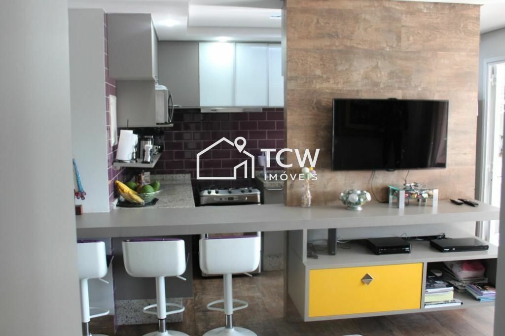 # 98m2, 3 Dorms sendo 1 Suíte, Lavabo, Banheiro social, Living integrado ao terraço gourmet, Cozinha, Terraço de serviços, 2 Vaga na garagem