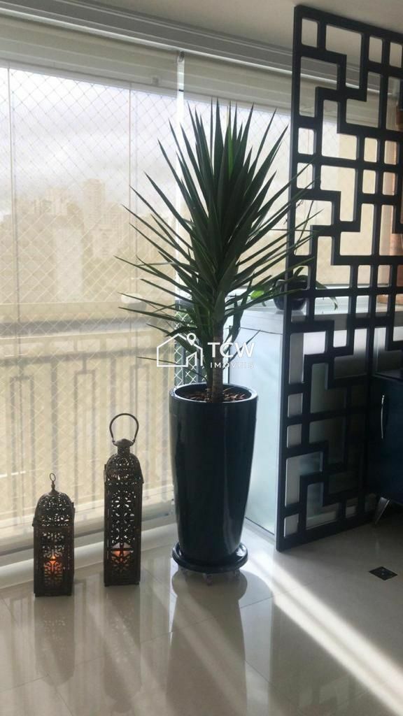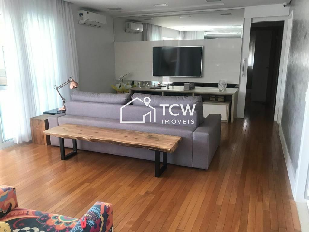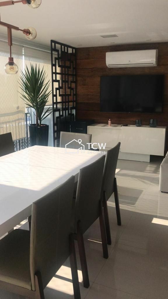 # 140m2, 3 Suítes, Lavabo, Hall social, Living integrado ao terraço, Sala de jantar, Cozinha, Área de serviço, Dependência de empregada com W.C., 2 Vagas na garagem