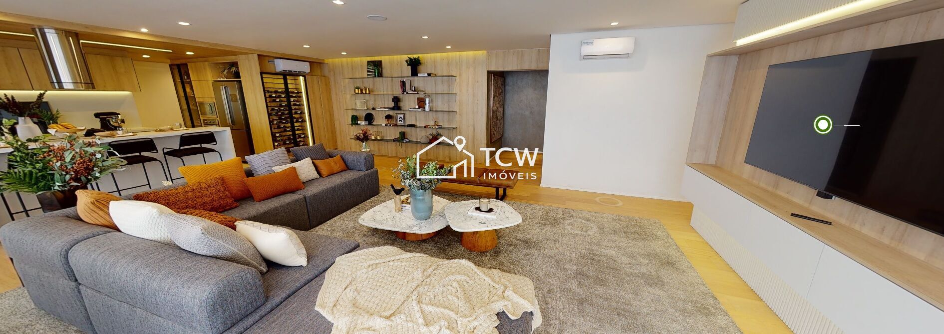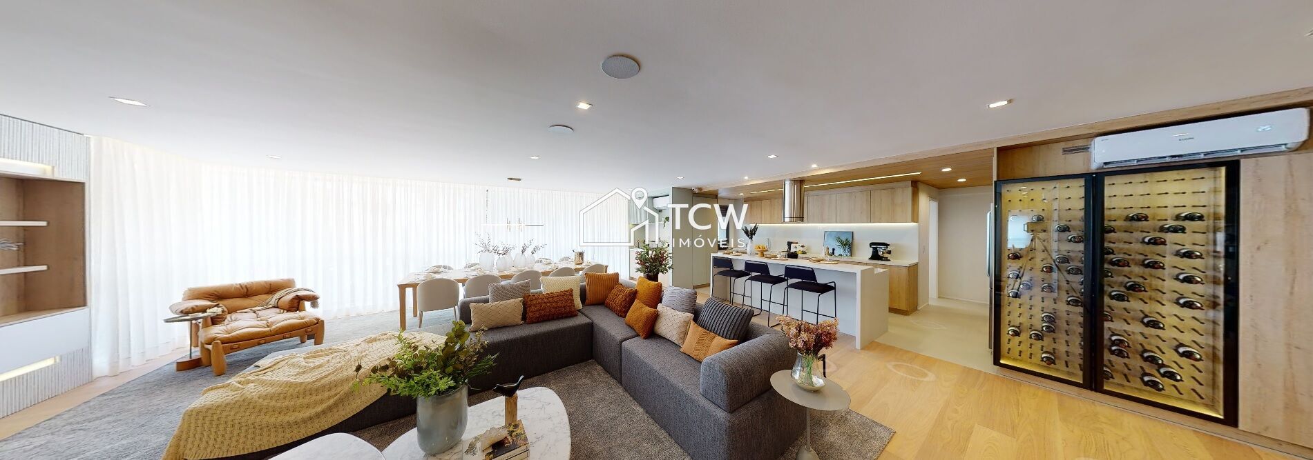 187m2, 4 Suítes, Lavabo, Hall social, Living integrado ao amplo terraço gourmet, Cozinha, Despensa, Área de serviço com W.C., 3 Vagas na garagem