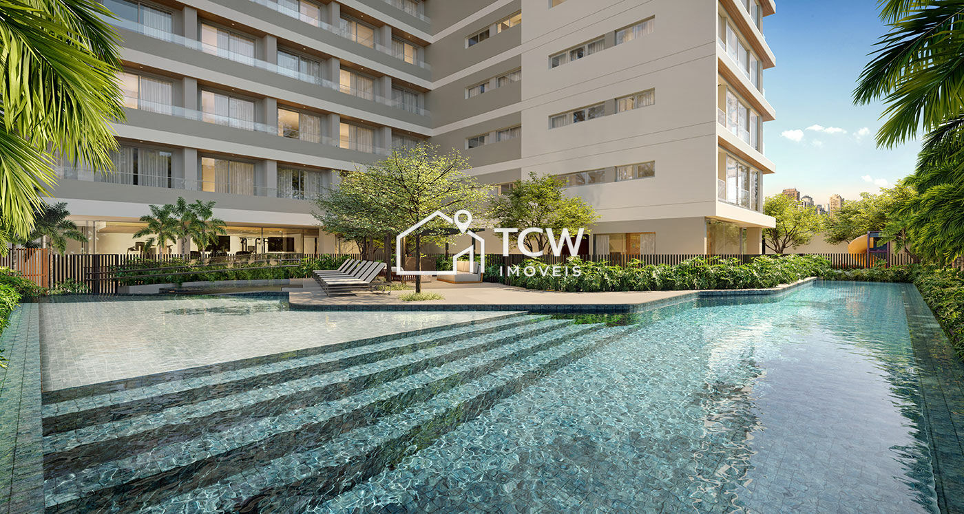 Lazer completo: Massagem, Brinquedoteca, Spa, Fitness, Salão de festas, Lobby, Playground, Lounge externo de festas, Piscina com raia, Deck molhado, Piscina bar lounge