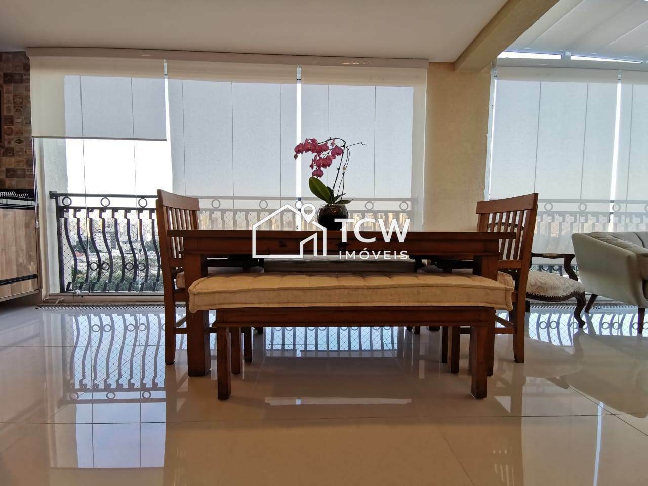 # 163m2, 3 Suítes, Suíte master com closet, Lavabo, Living integrado ao Terraço gourmet, Sala de estar, Sala de jantar, Cozinha, Área de serviço, Dependência de empregada, 3 Vagas na garagem