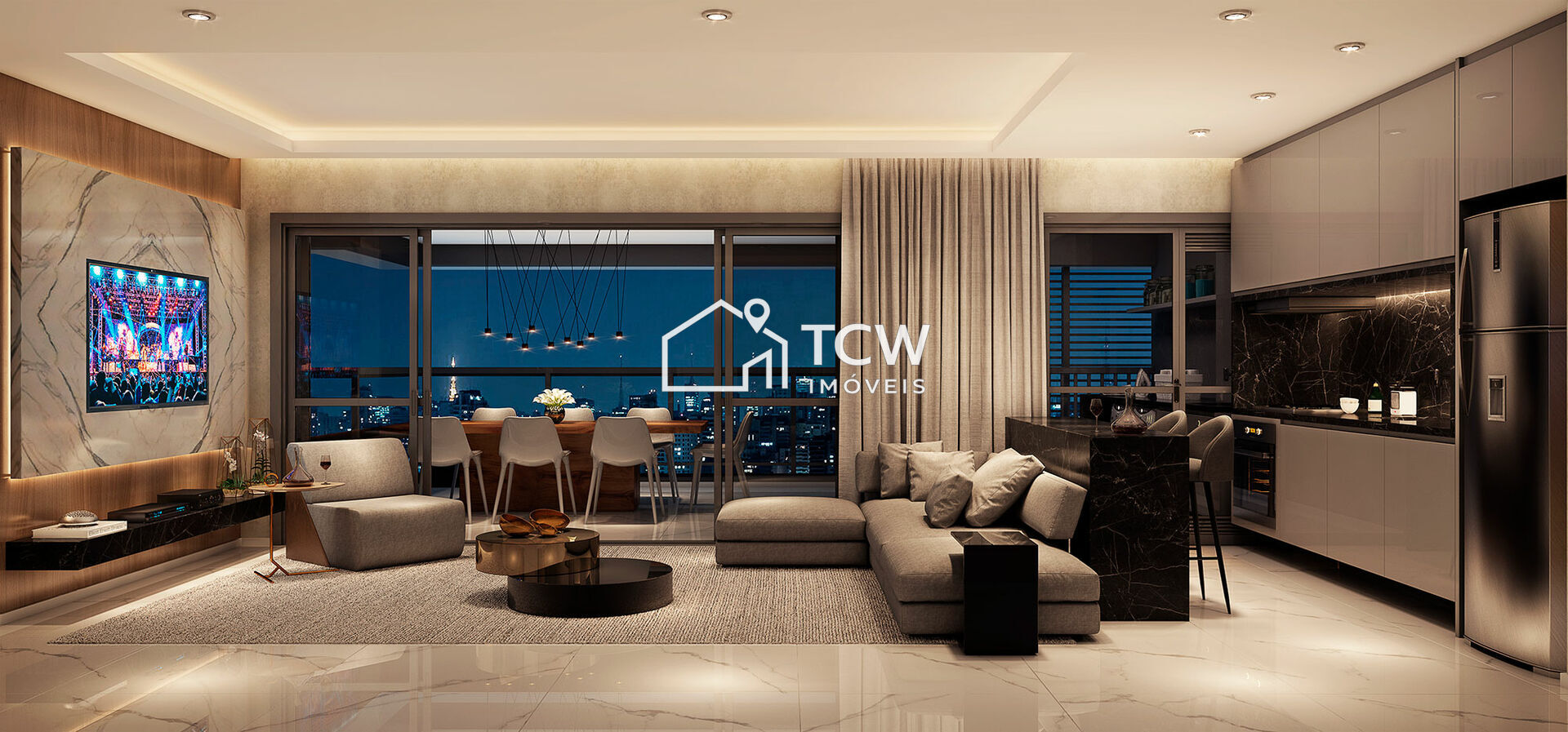 Diferenciais: Terraço com possibilidade de fechamento retrátil, Churrasqueira a carvão, Cozinha com opção de integração, Suíte com espaço para amplos armários, Infraestrutura para ar-condicionado, Tomadas USB