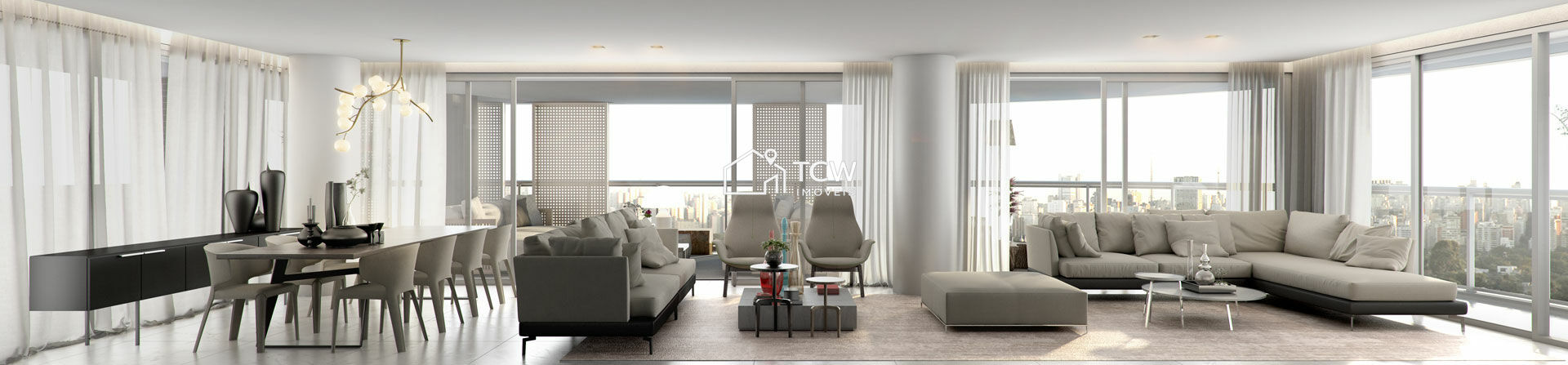 322m2, 4 Suítes, Lavabo, Hall social, Living integrado ao amplo terraço gourmet, Sala de jantar, Cozinha com despensa, Área de serviço com W.C., Dependência de empregada, Depósito privativo, 5 Vagas na garagem