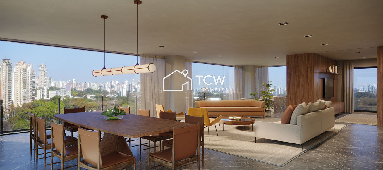 231m2, 3 Suítes, Hall social, Lavabo, Living integrado ao terraço gourmet, Sala de jantar, Cozinha, Área de serviço com W.C., Área técnica, Depósito privativo, 04 Vagas na garagem