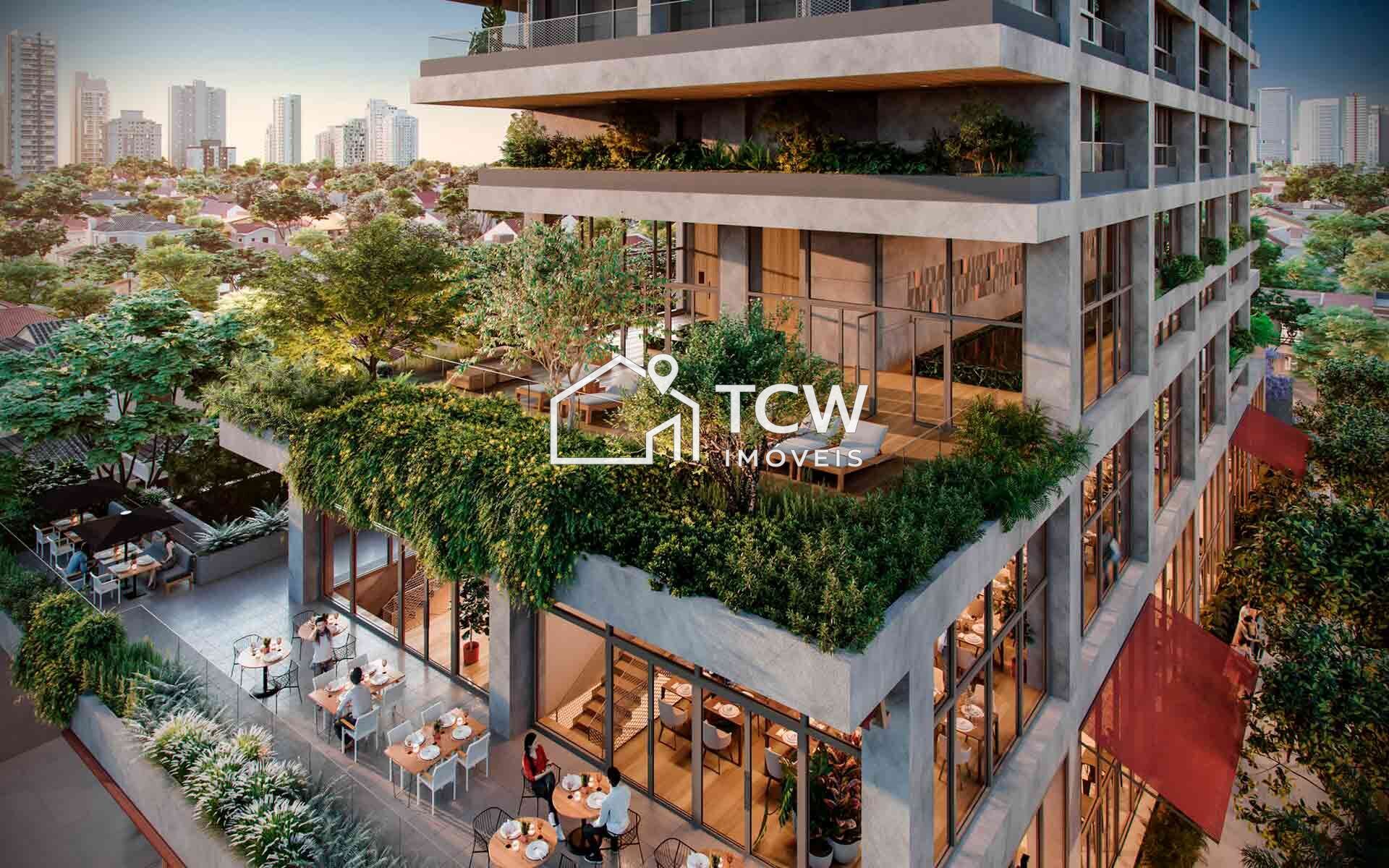 Lazer completo: Lobby, Salão de festas gourmet, Central Lounge, Jardim integrado, Fitness, Lavanderia, Área de delivery, Bicicletários, Hidrossagem, Duchas, Sauna seca, Piscina aquecida com raia de 25m, Sala de massagem, Solarium