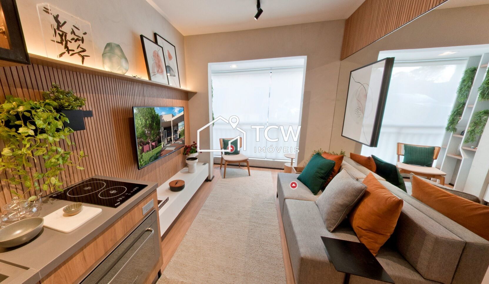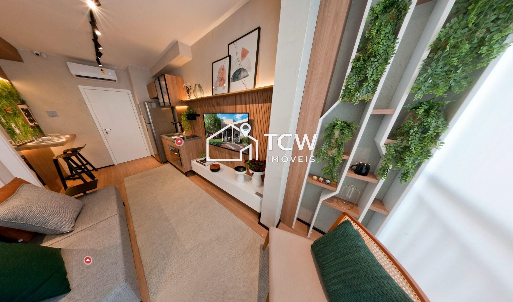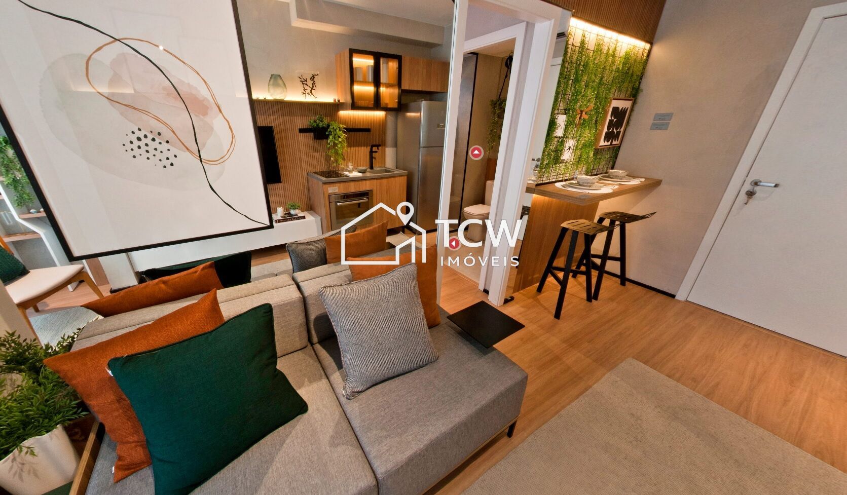28m2 a 30m2, 1 Dormitório ou Studio, Banheiro social, Living com terraço, Cozinha