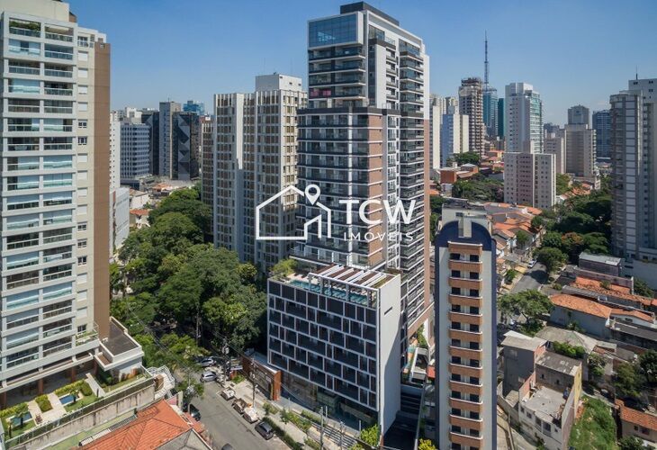 Apartamentos por andar: 6 (pavimento tipo) e 8 (pavimento Studio)