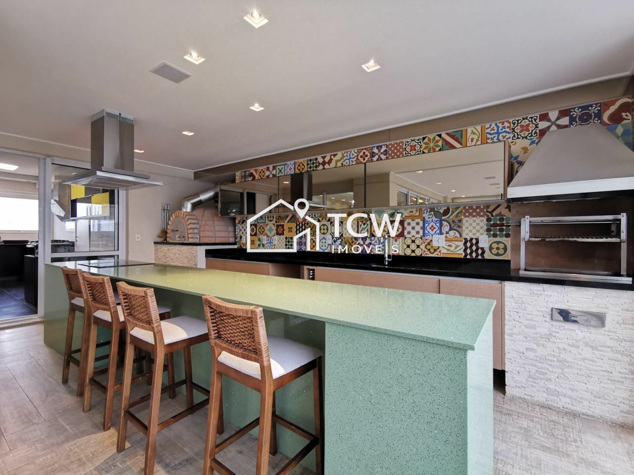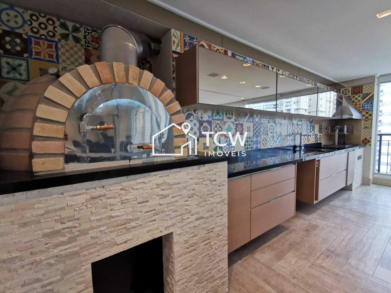 # Varanda gourmet com churrasqueira e forno a lenha