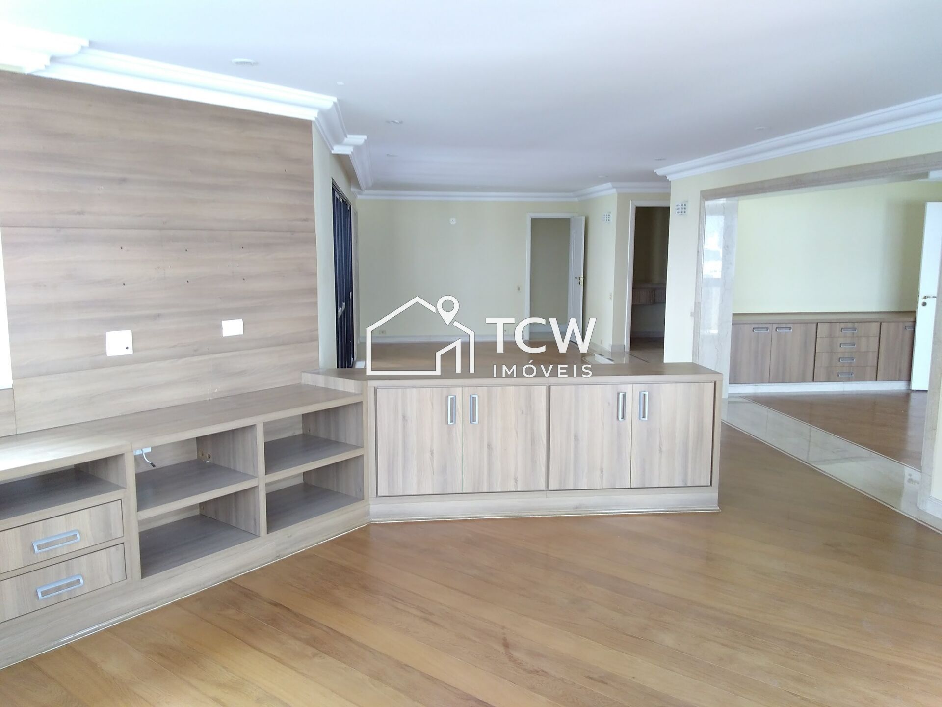 # 267m2, 3 Suítes sendo 1 Suíte master, Lavabo, Hall social, Bar, Living integrado ao terraço gourmet, Sala de tv, Sala de jantar, Copa, Cozinha, Despensa, Área de serviço, Dependência de empregada com W.C., Deósito privativo, 4 Vagas na garagem