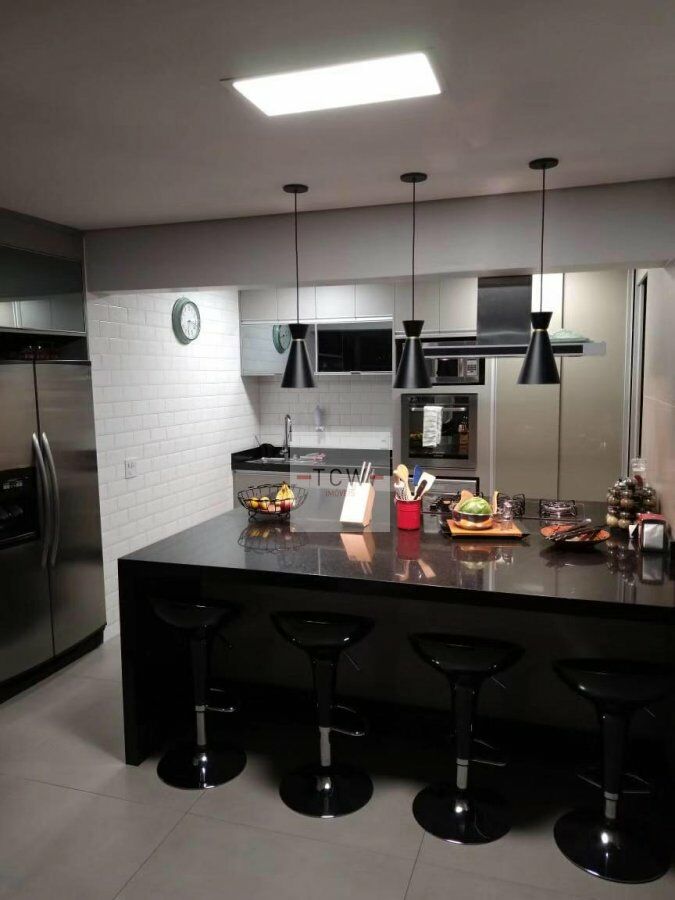 # Cozinha gourmet integrada a sala ampla e iluminada