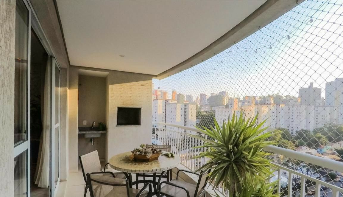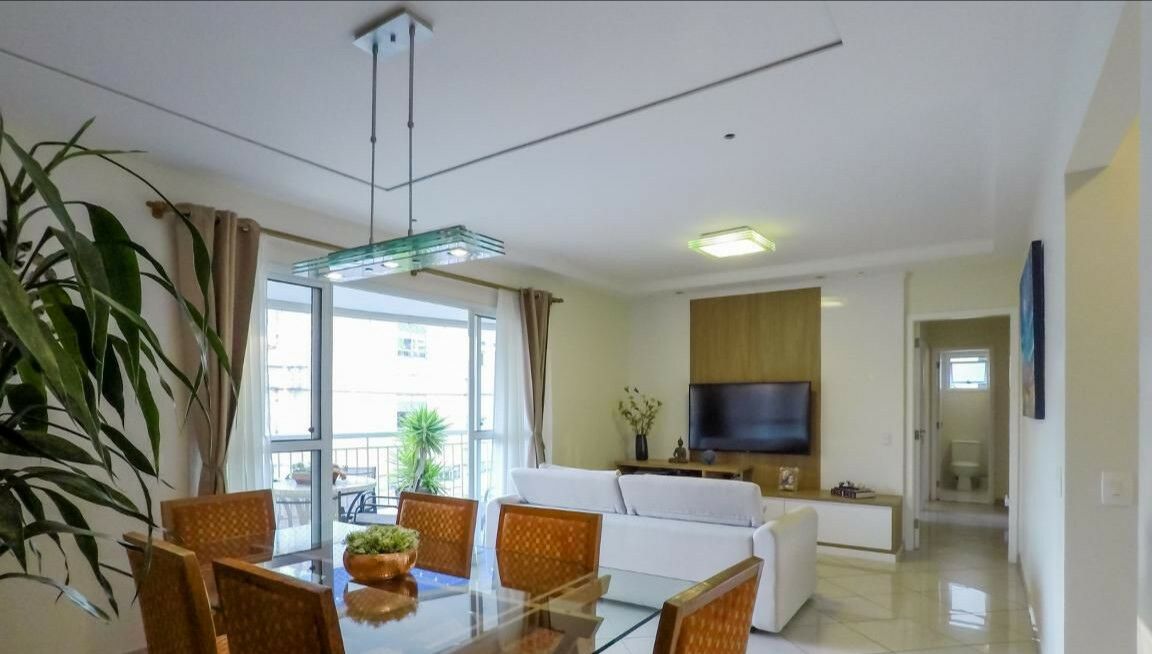 # 115m2, 3 dormitórios sendo 1 suítes, Lavabo, Living integrado a varanda gourmet, Cozinha, Área de serviço, Dependência de empregada com banheiro, 2 vagas na garagem
