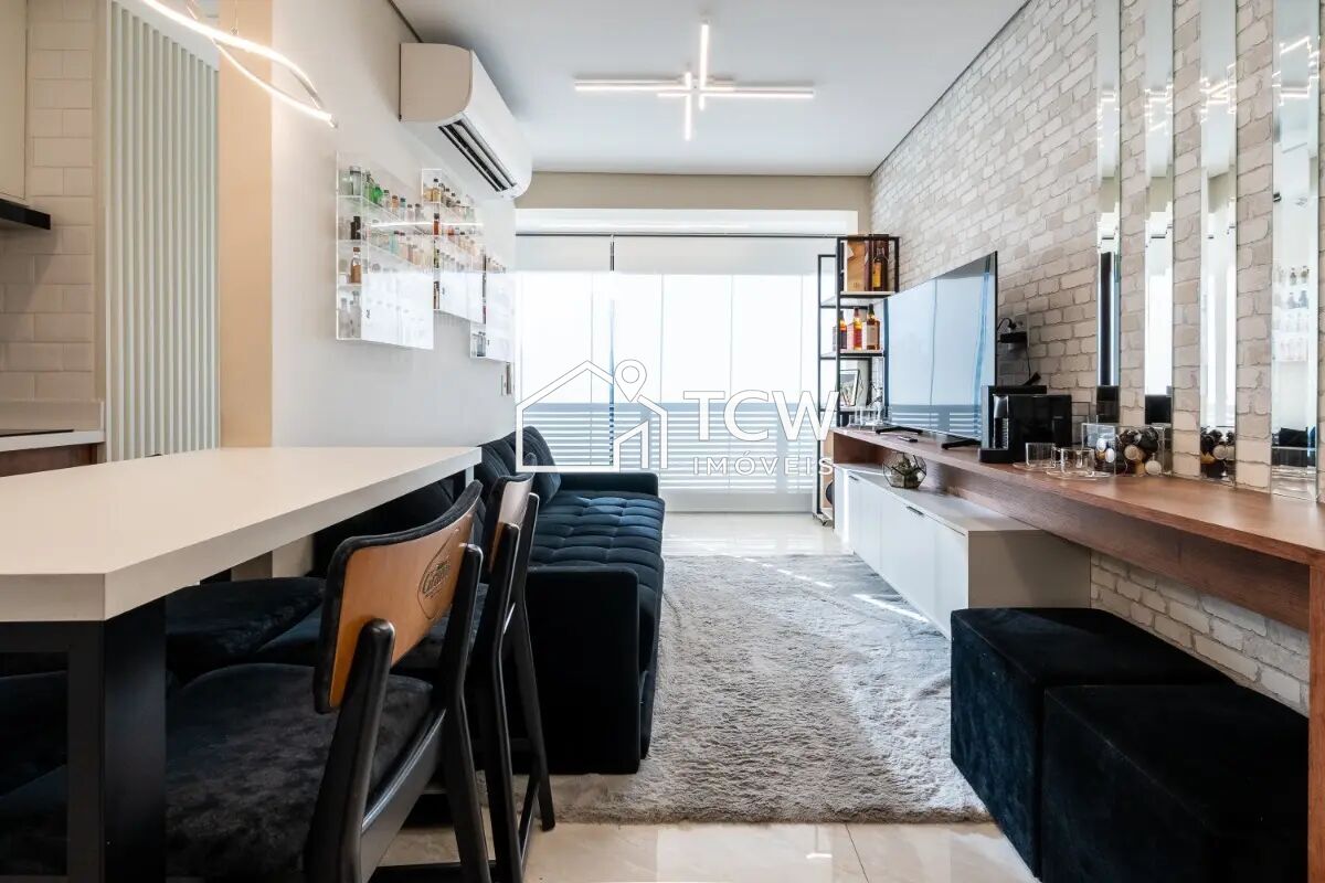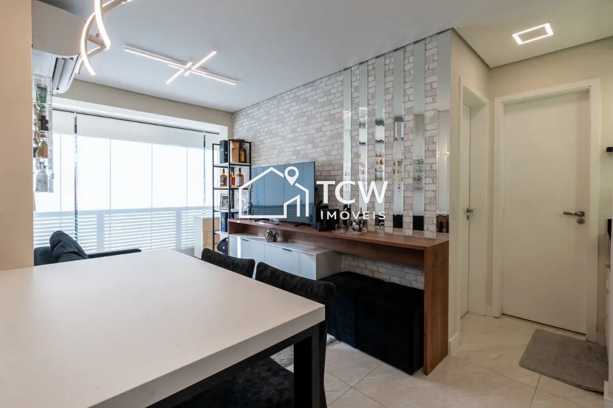 42m2, 1 Dormitório, Banheiro social, Living ampliado integrado ao Terraço, Sala de jantar, Cozinha, Área de serviço, 1 Vaga na garagem