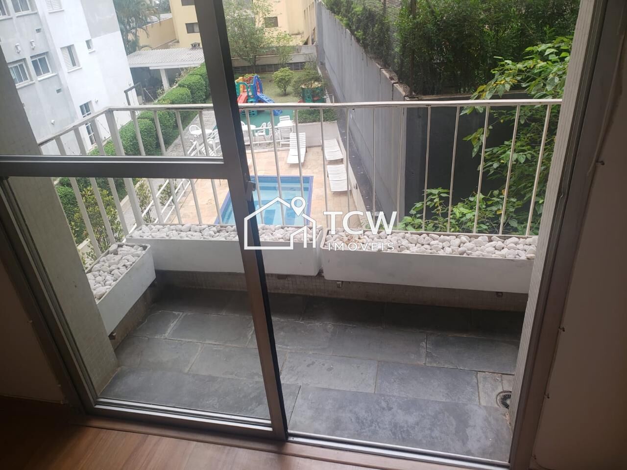 # Living com vista para o jardim e piscina
