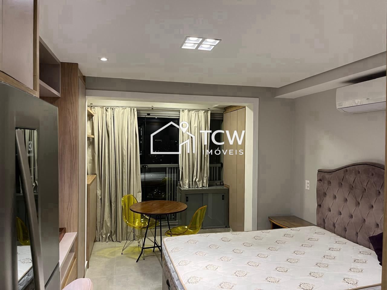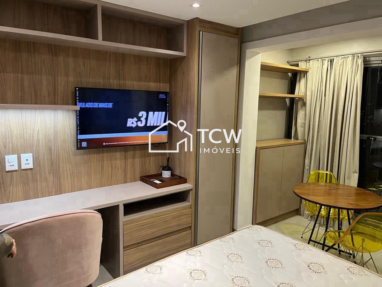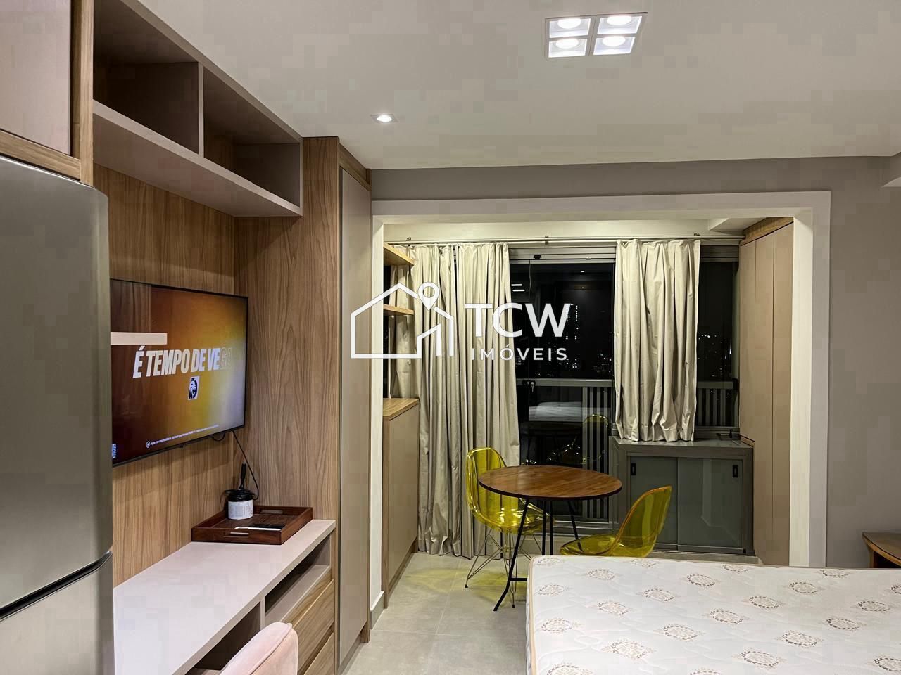 Studio com 25m2, 1 Dormitório com sacada, Banheiro, Cozinha