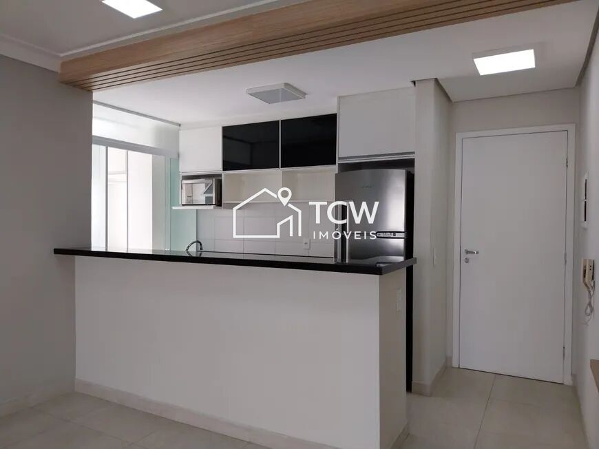 # Cozinha americana totalmente equipada com cooktop, forno, geladeira e microondas
