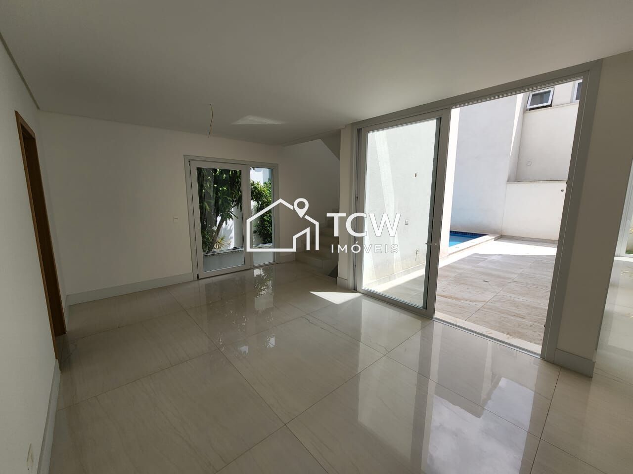 # 360m2 de Casa em Condomínio, 4 Suítes, Lavabo, Hall de entrada, Living integrado a varanda com piscina, Sala de jantar, Cozinha, Área de serviço, Dependência de empregada, 4 Vagas na garagem