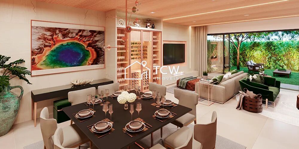 Casa de alto padrão com 552m2. Piso térreo: Amplo living com sala de tv e sala de jantar integrada ao Jardim, Lavabo, Cozinha, Despensa. Piso superior: 3 Amplas suítes. Rooftop: Espaço gourmet com piscina privativa. Subsolo: 4 Vagas na garagem, Área de serviço, 2 Depósitos privativos, Dependência de empregada com banheiro.